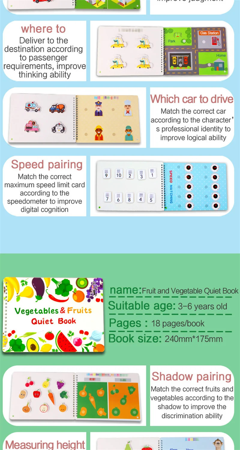 [Идеальная образовательная Форма] Эта книга Монтессори использует великолепные красочные изображения и универсальность для развития навыков общения и решения проблем вашего ребенка, развития мелкой моторики, воображения, логики и визуального восприятия. Отличная сенсорная игрушка для детей с СДВГ, как аутизм обучающие материалы.