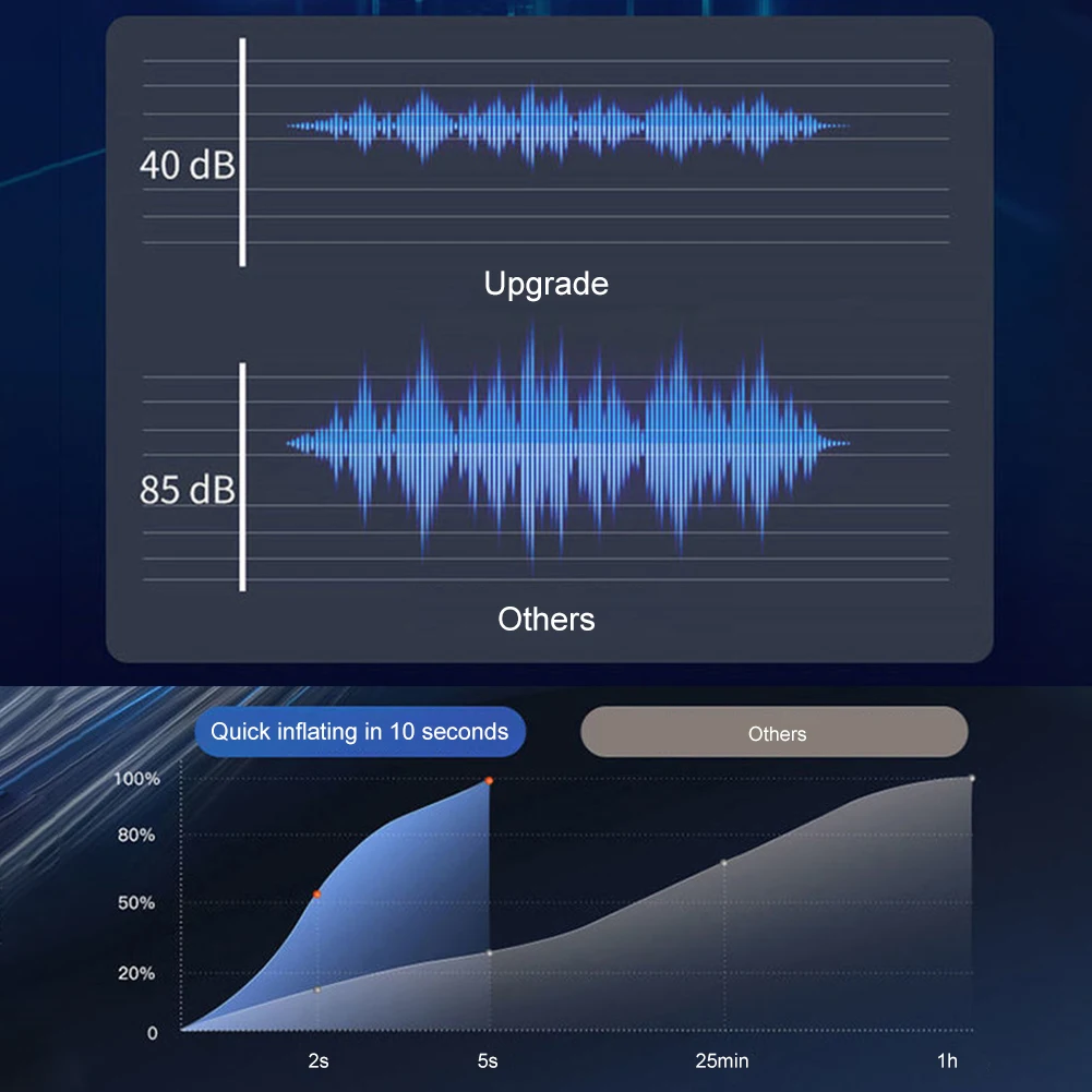 * 5. [Низкий уровень шума] Встроенный Специальный амортизатор, двойная структура снижения шума, что делает инфляцию тише.