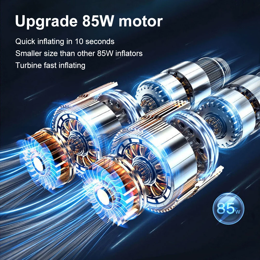 * 3. [Быстрое надувание] Медный двигатель мощностью 120 Вт генерирует высокую мощность, чтобы полностью надуть Шину за несколько секунд.