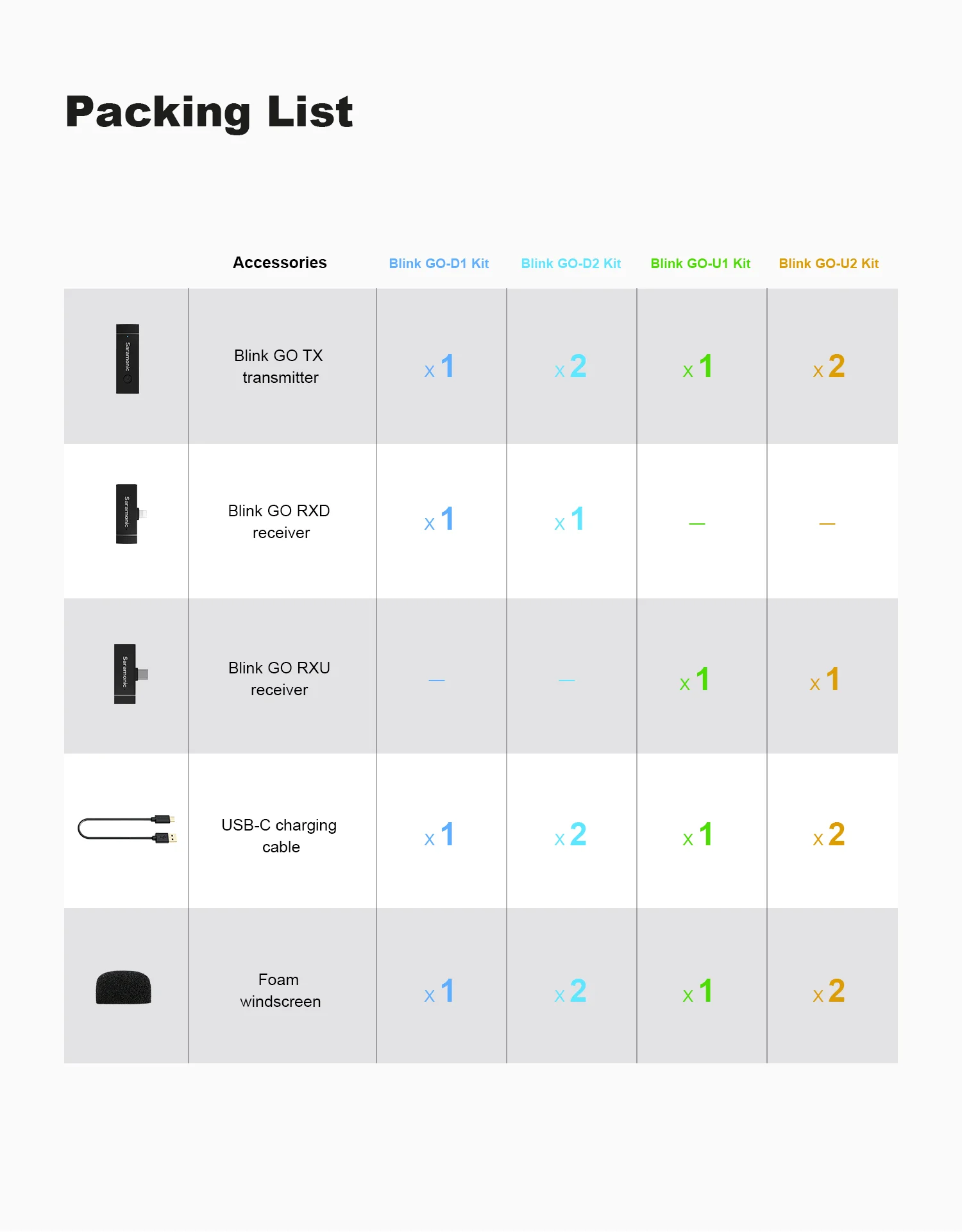 🎙Комплект Blink Go-U2 совместим с большинством устройств с USB-C-портом, включая смартфоны и планшеты Android. Включая 2 передатчика, набор Blink Go-U2 может одновременно записывать два источника звука.