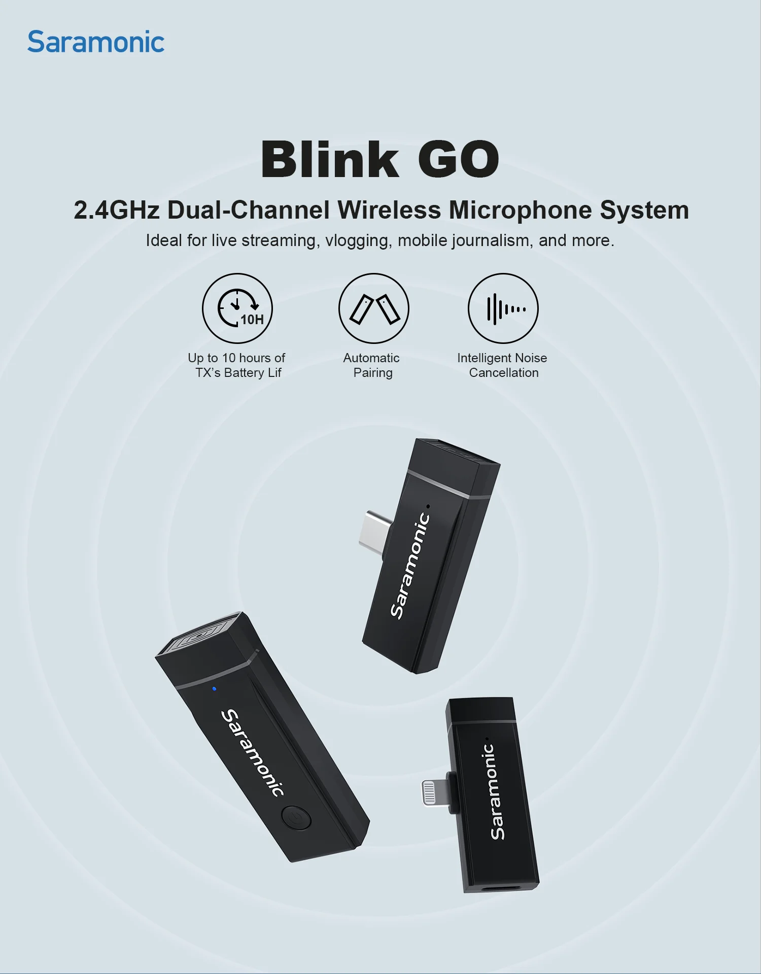 Мерцания Go система представляет собой ультракомпактный и портативный 2,4 ГГц беспроводной микрофон системы для цифровых зеркальных камер, совместимый с мобильными устройствами. Он оснащен автоматическим сопряжением и возможностью выбора шумоподавления, идеально подходит для потоковой передачи в реальном времени, vlogging и других приложений для захвата аудио.