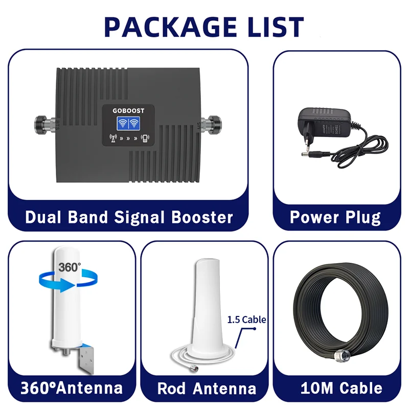 GOBOOST Cellular Amplifier 2 Band 4G LTE Signal Booster 900 1800 2100 2G 3G GSM 850 1900 Network Booster Signal Repeater Antenna