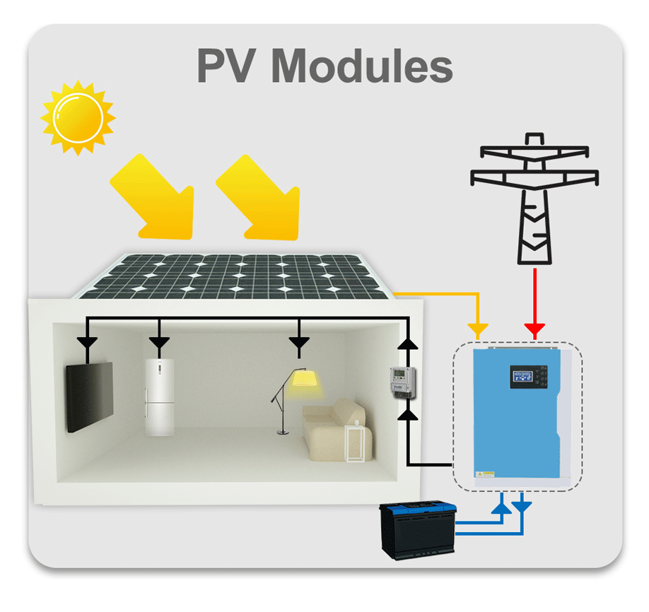 Генерирует энергию от PV непосредственно для подачи нагрузки, даже без батареи;