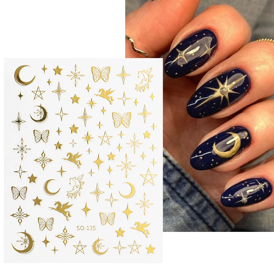 [Стиль] летние наклейки для ногтей с изображением сказочной луны и звезд бабочек