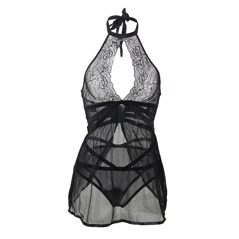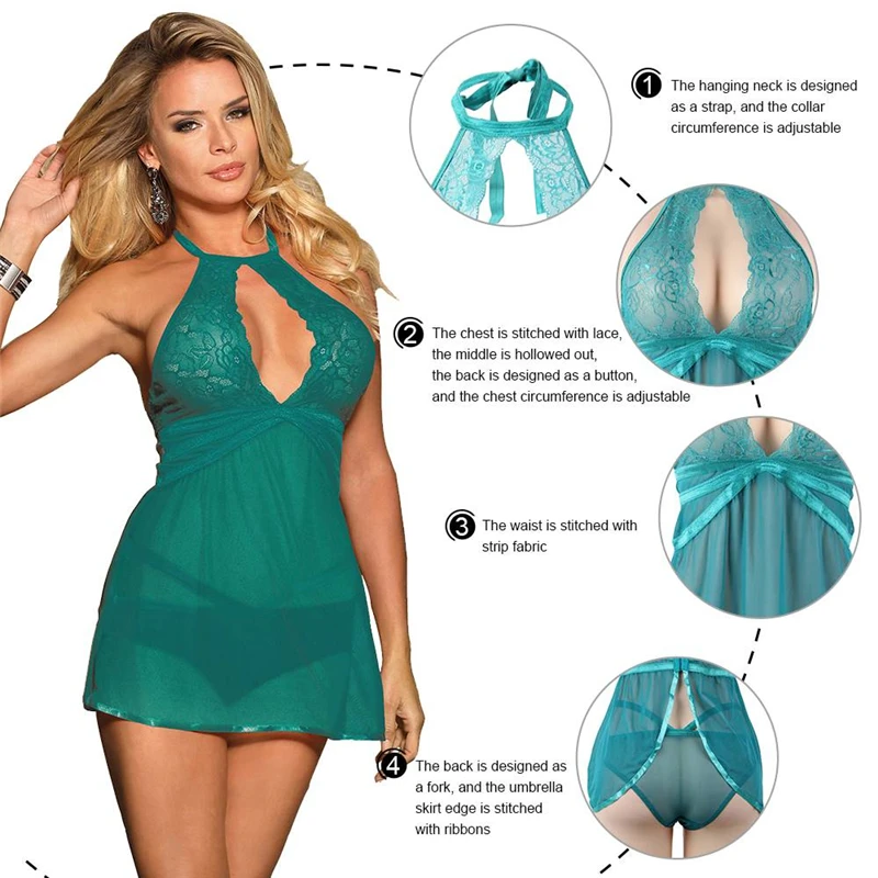 Ohyeahlady, элегантная женская ночная рубашка, платье, сексуальное, Холтер, Babydoll, нижнее белье размера плюс, открытая спина, кривая, ночное белье, кружевная Прозрачная Юбка