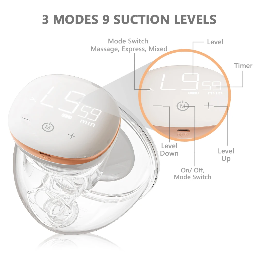 Wearable breast pump, small and lightweight to place inside your bra, hands-free, more convenient to use.