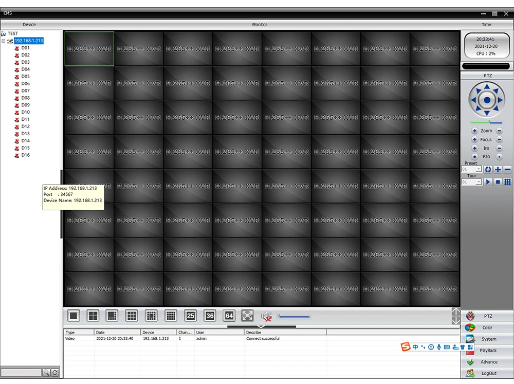 ИнтерфейсИнтерфейс оператора16-битное полноцветное меню, Поддержка мышиПредварительный просмотр1/4/8/9/16/25/321/4/8/9/16