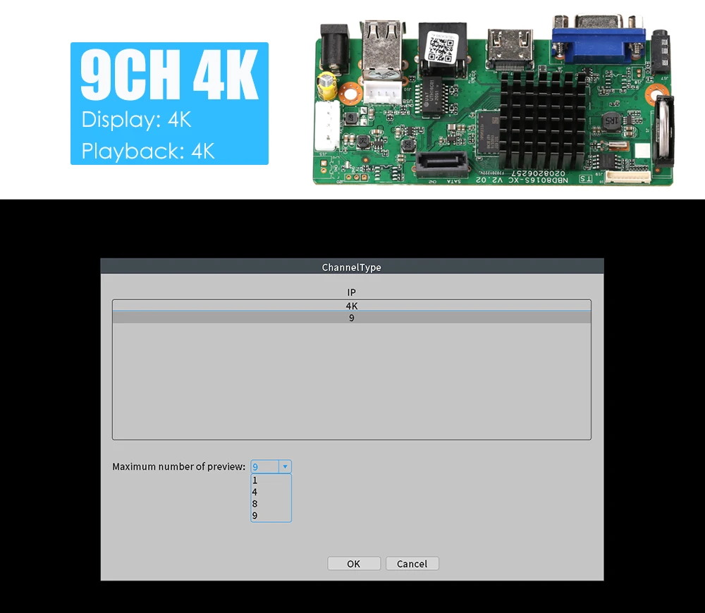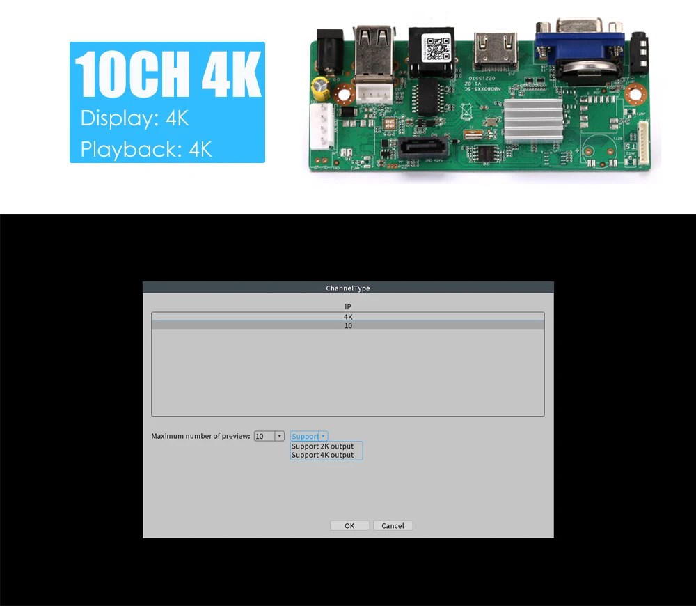 10CH,16CH "4K" выходной дисплей нужно получить в "цифровое" меню на выбор.