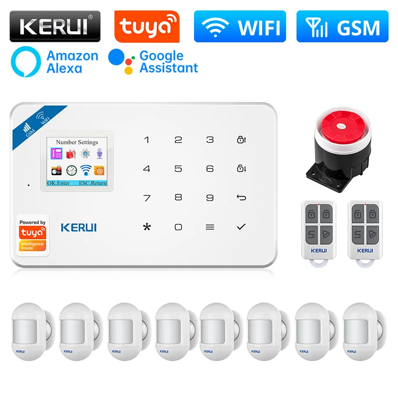 Включать и выключать сигнализации KERUI с ваш голос и получите мобильные оповещения о двери/окна или дыма охранная сигнализация
