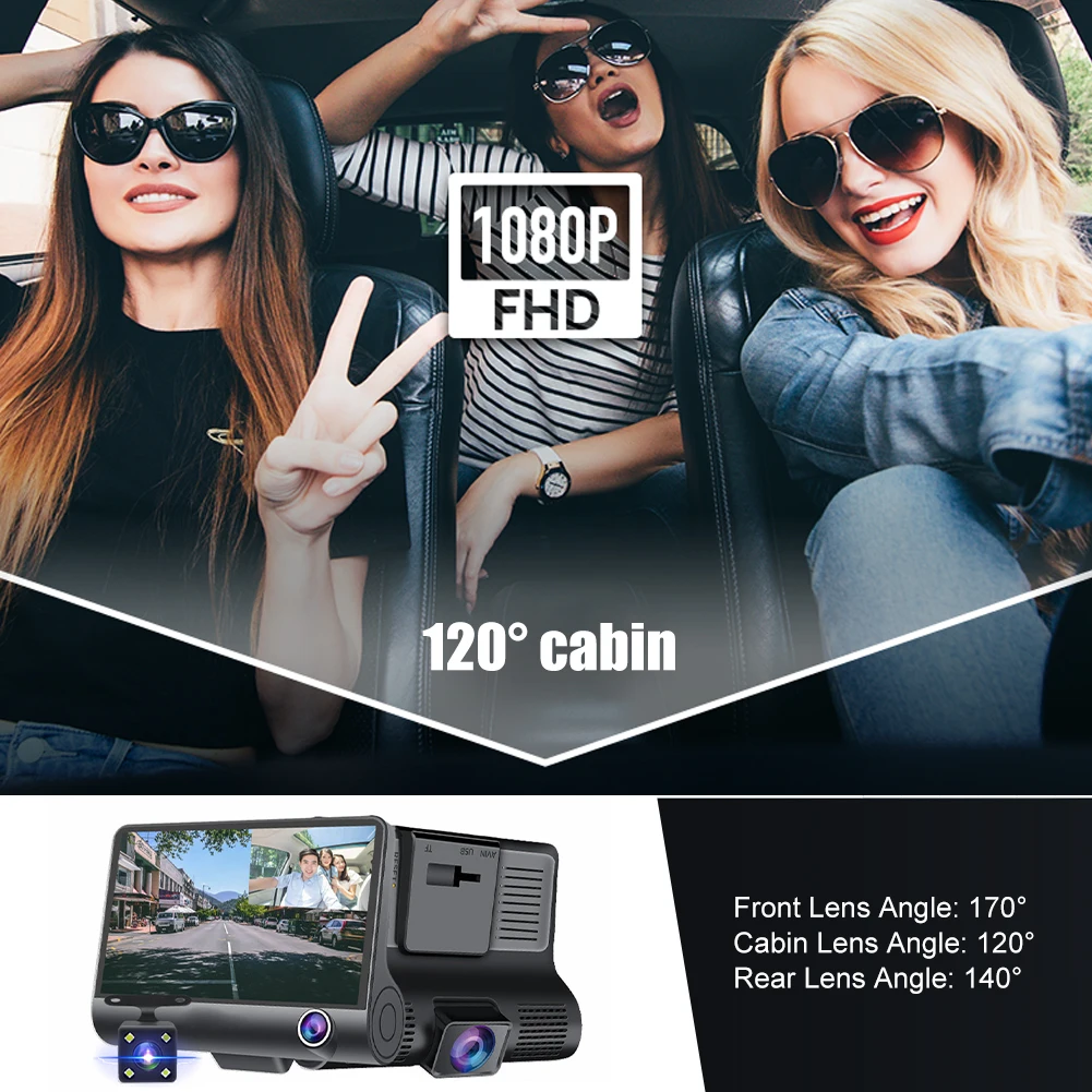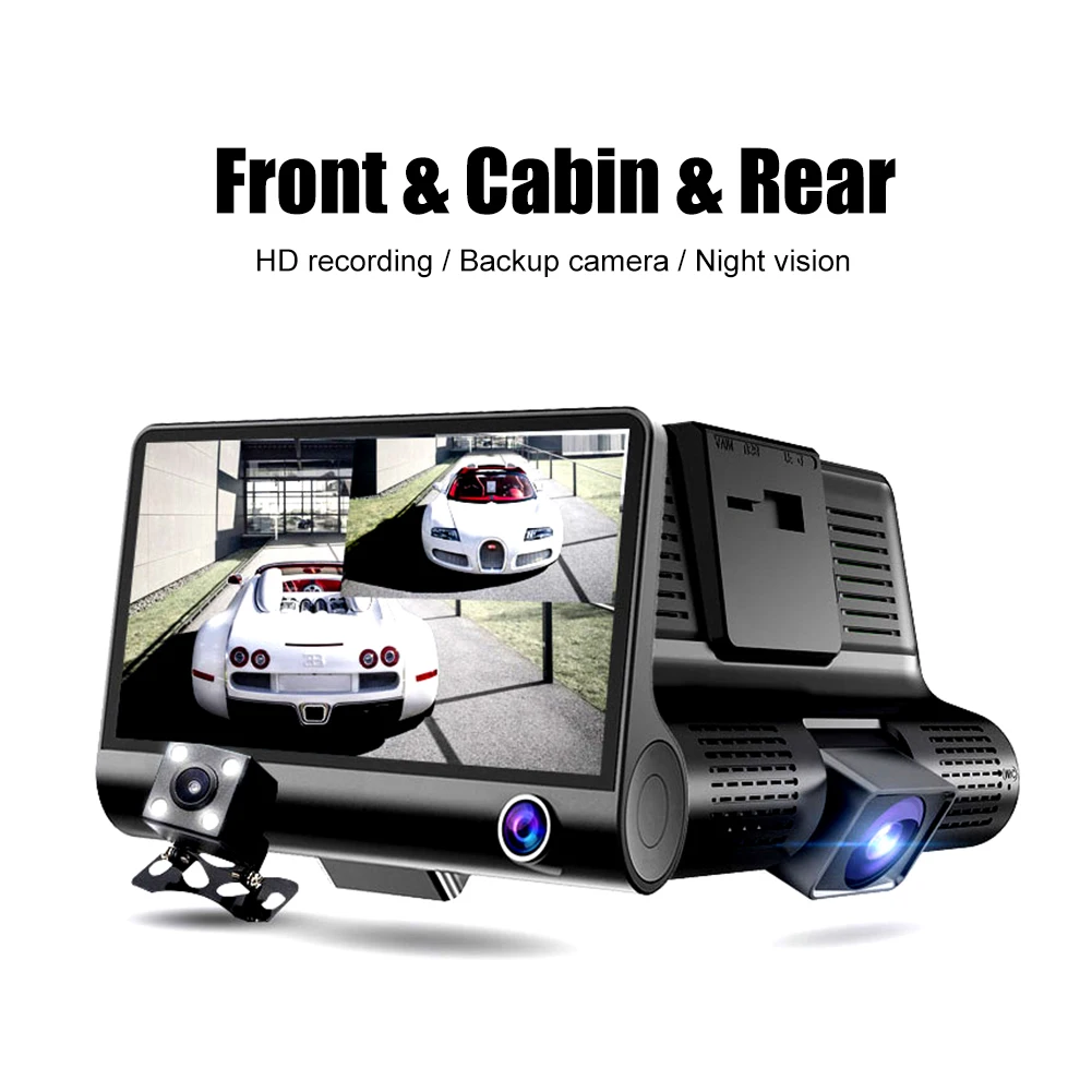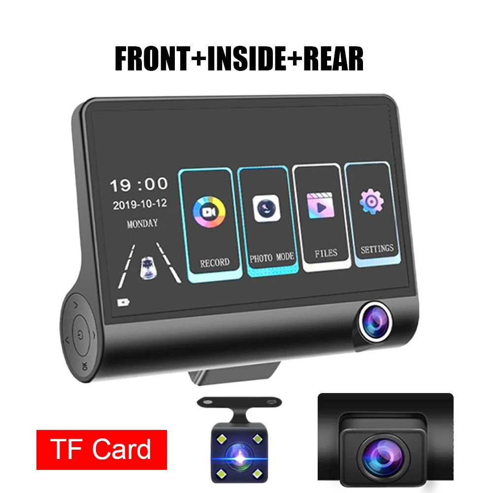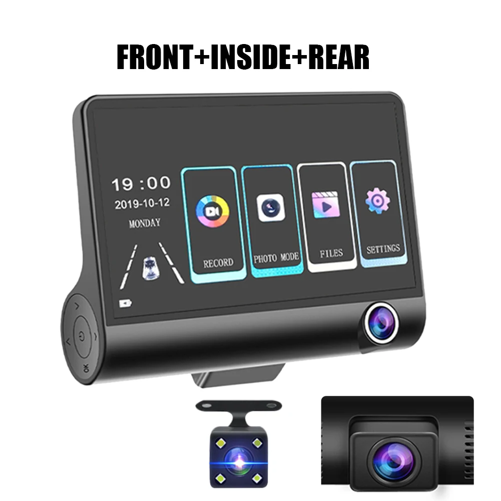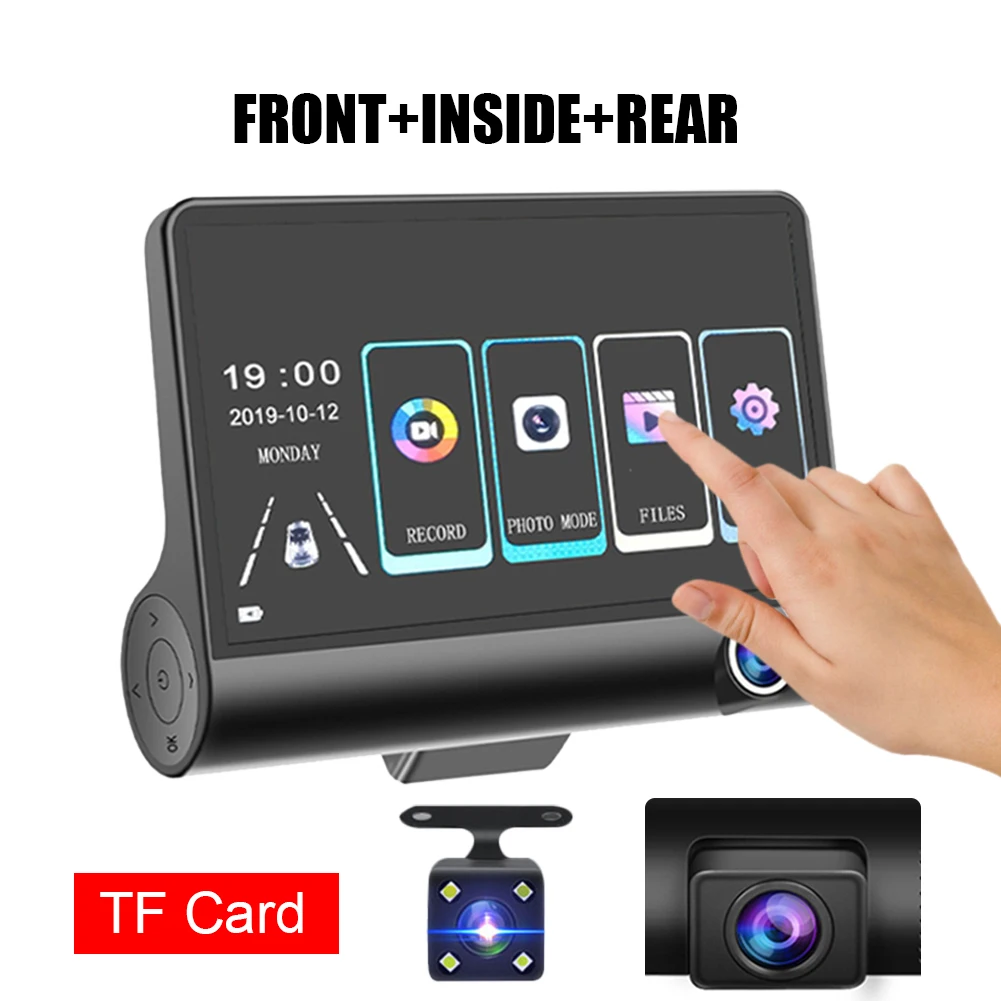 3 объектива Dash Camera 4 "сенсорный экран Dash Cam 1080P Автомобильный видеорегистратор Передняя внутренняя задняя камера Blcak Box циклическая запись g-сенсор DVR