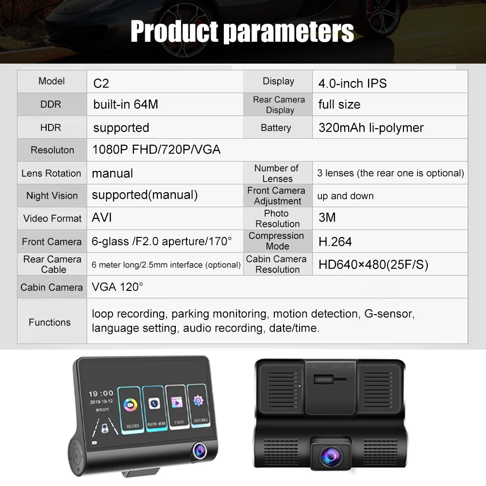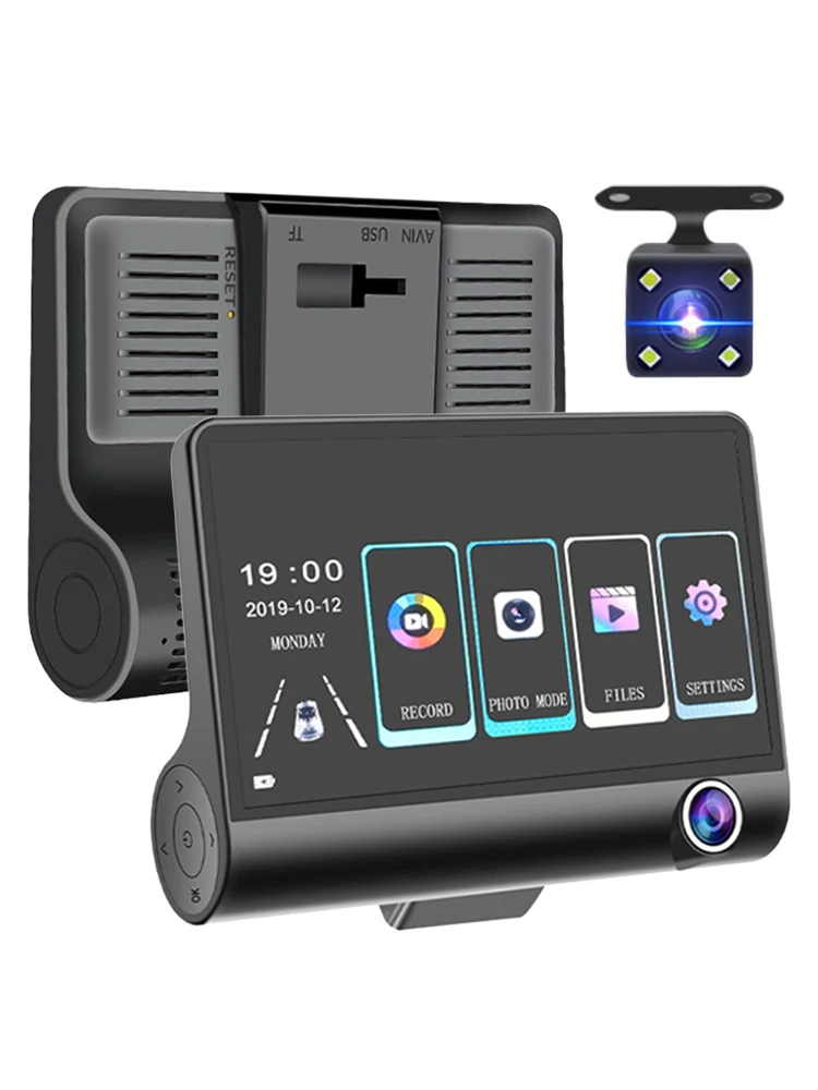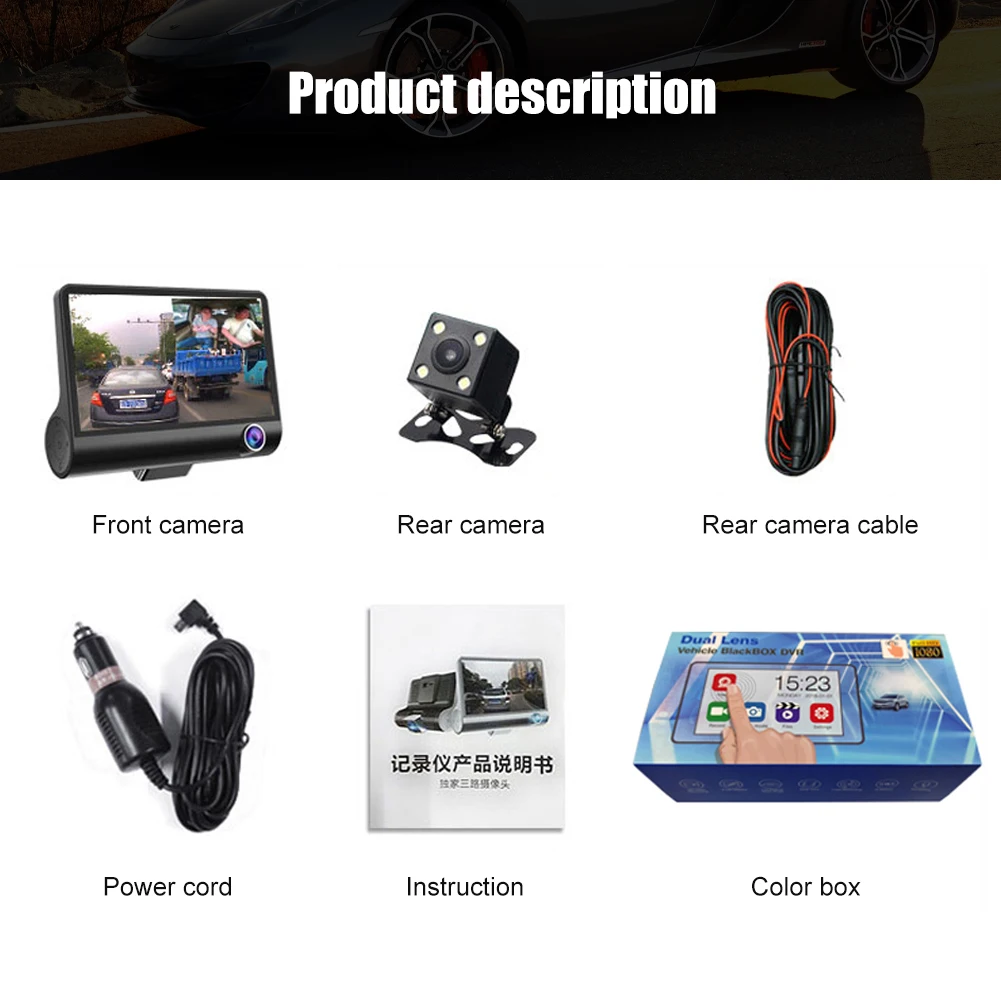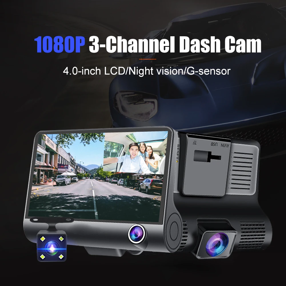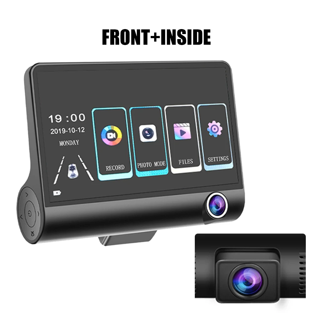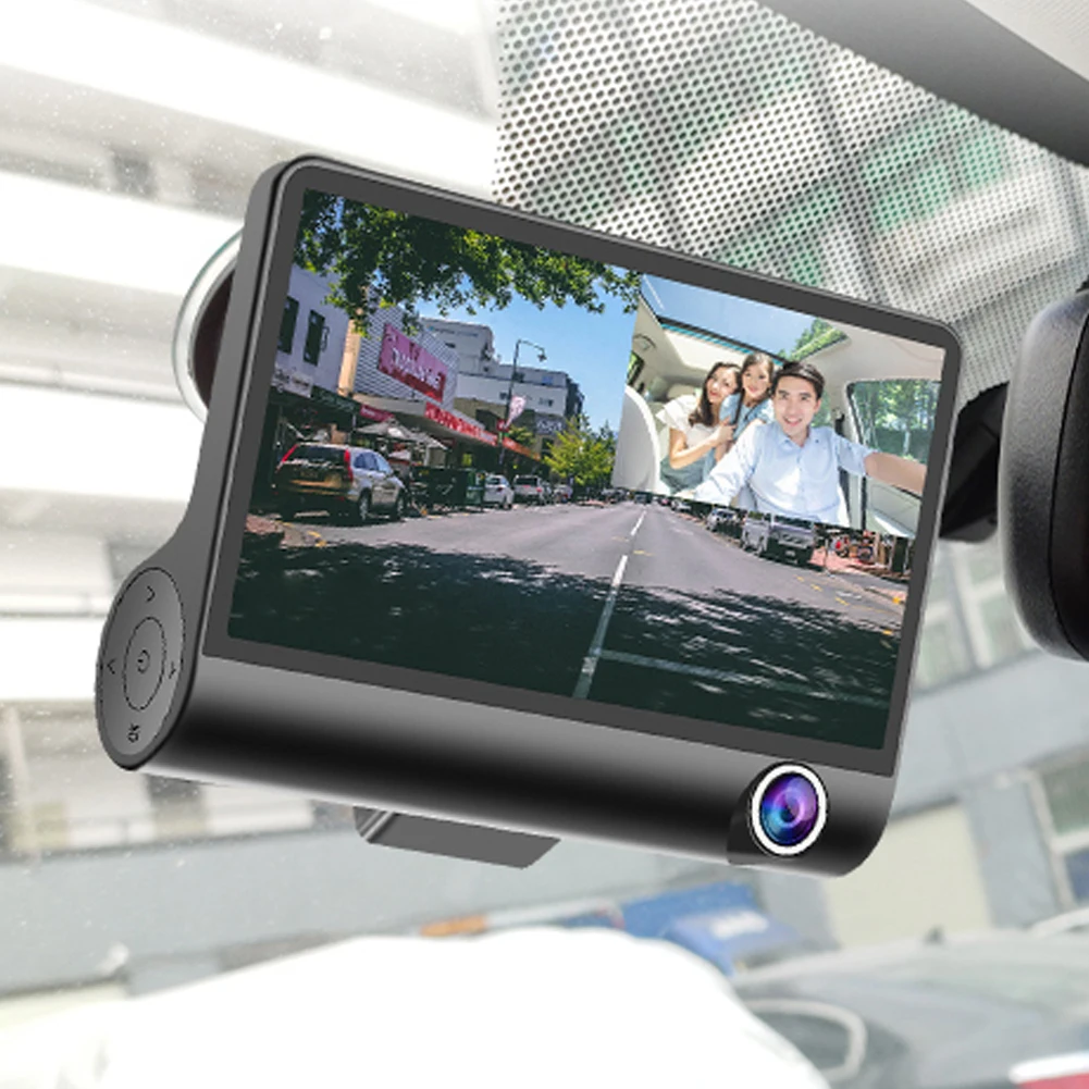 3 объектива Dash Camera 4 "сенсорный экран Dash Cam 1080P Автомобильный видеорегистратор Передняя внутренняя задняя камера Blcak Box циклическая запись g-сенсор DVR