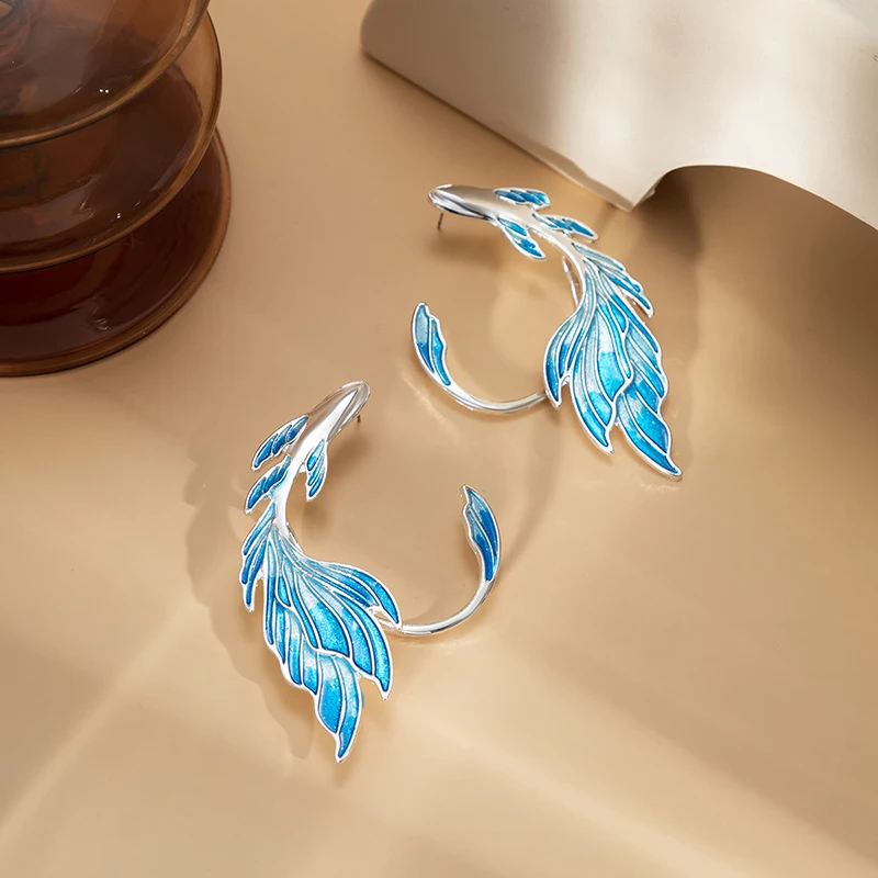 НовинкаСерьги эльфа с масляной капелькой, золотая рыбка, градиентные клипсы для ушей, Y2K, эстетичный дизайн, ювелирное изделие, Подарочная роспись, волшебные Висячие шпильки для ушей, оптовая продажа
