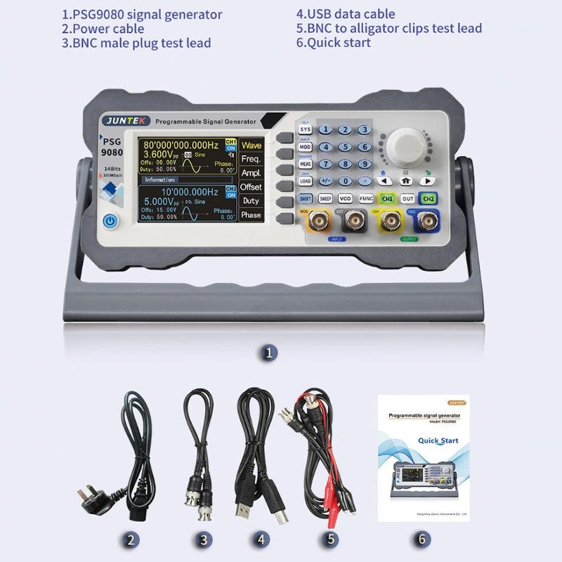 OOTDTYПрограммируемая функция PSG9080/генератор сигналов произвольной волны может генерировать синусоидальные волны, квадратные волны, треугольные волны, импульсные волны, произвольные волны и многие другие формы волны. Частотный диапазон до 80 МГц, с модуляцией, частотной подметкой, измерением частоты сигнала и функциями программирования и т. д., а также выходной сигнал, амплитуда, фаза, рабочий цикл и частота могут отображаться одновременно. Эта серия имеет отличные амплитудно-частотные характеристики, Многофункциональность, высокую производительность, экономичность, портативность и другие характеристики, обеспечивая новый выбор для образования, исследований и разработок, производства, тестирования и других отраслей промышленности. Инструмент-это изысканный внешний вид, красивый и оснащен 3,5 дюйма с высоким разрешением Цвет ЖК-дисплей дисплей взять с собой новый визуальный опыт.