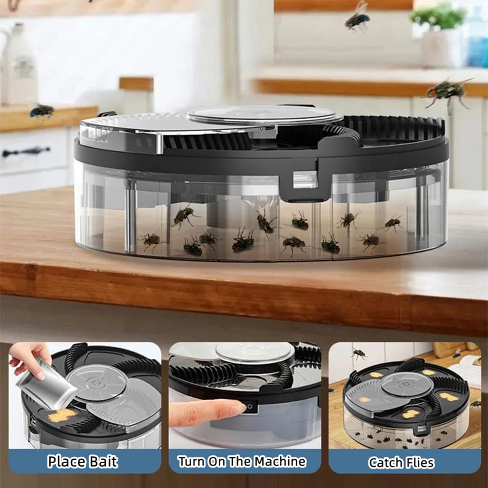 3. The fly is attracted by the bait and transferred into the box by the rotating plate.