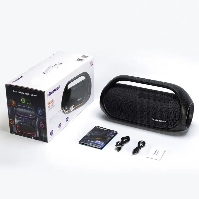 Tronsmart Bang имеет 2 динамика общей мощностью 60 Вт с частотным диапазоном 20-20000 Гц. Для подключения к источнику звука используется технология Bluetooth и NFC, а также можно использовать кабель AUX или карту памяти. Акустика станет отличным решением для прослушивания музыки на природе или в помещении.