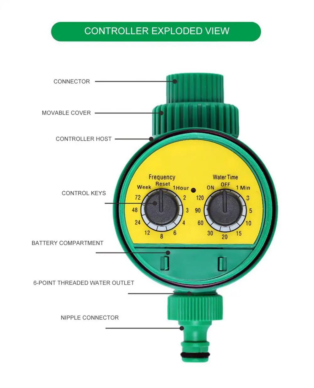 Цикл полива (может управляться вращающимся переключателем), самое короткое время цикла-6 часов, а самое длинное время цикла-7 дней.