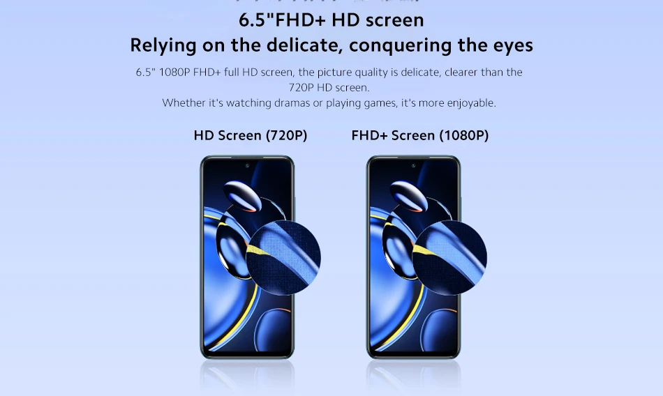 6,5 "1080P FHD + full HD экран, качество изображения тонкое, четче 720P HD экран