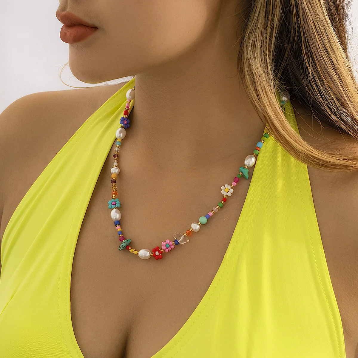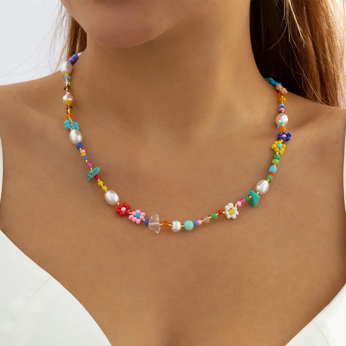 Baroque Pearls Daisy Seed Beads Chain Choker Necklace For Women Handmade Flowers Beaded Collar Boho Summer Hot Sale Y2K Jewelry