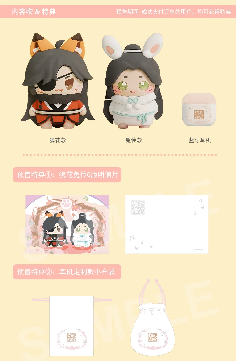 Размер: зарядный отсек: 45*45*21 мм, силиконовый чехол с кроликом xie lian: 128*82*42 мм, силиконовый чехол fox hua cheng: 129*98*42 мм