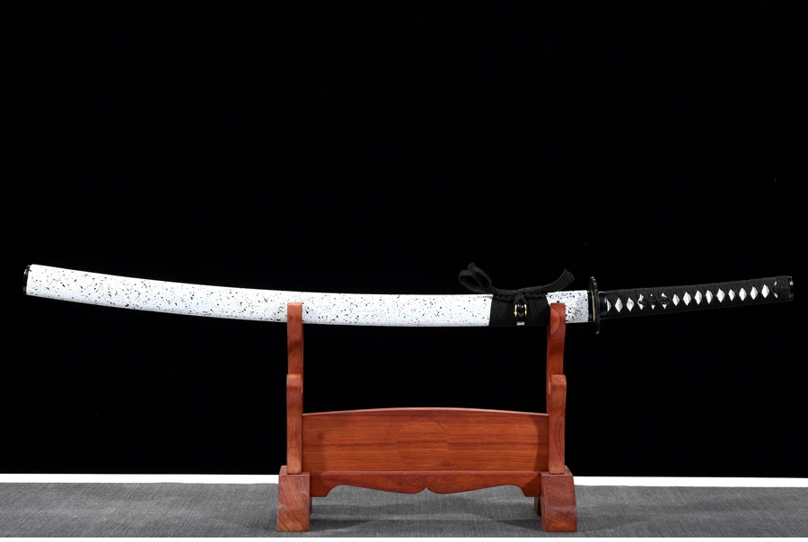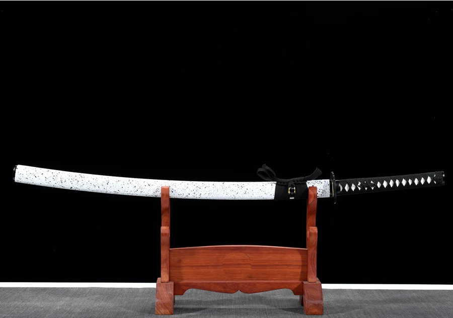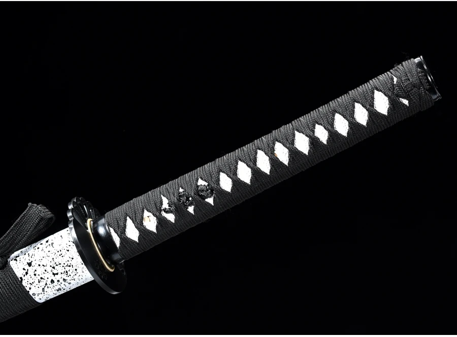 TSUKA:Ядро Tsuka (ручка) деревянное и плотно обернуто на настоящую белую кожу rayskin синтетическим шелком Ito. Фучи (рукав) и Кашира (пуговица) изготовлены из железа. Tang Catana обеспечивается двумя Mekugi (peg). Две медные Menuki (орнамент) находятся на каждой стороне Tsuka.