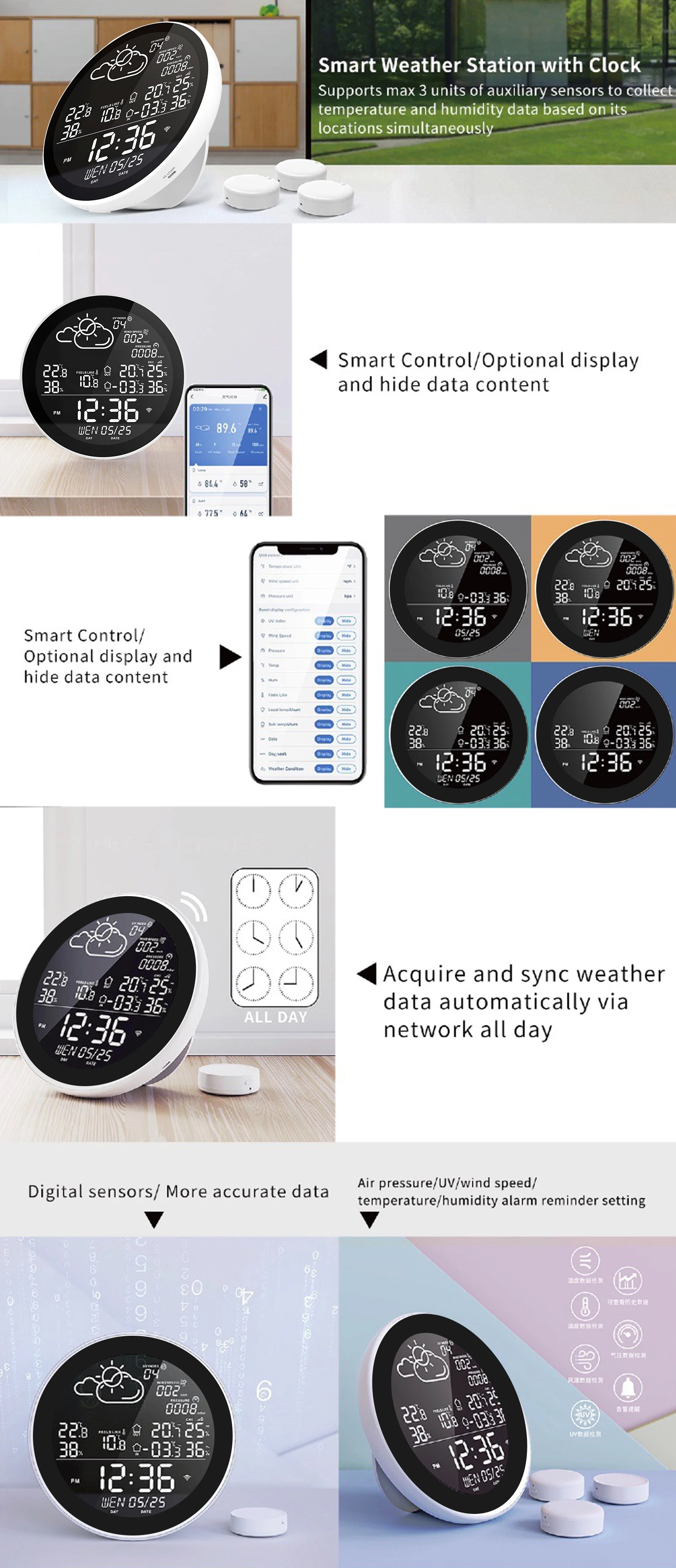 The weather data, indoor/outdoor temperature history data also can be checked from the Smart Life APP via mobile phone.