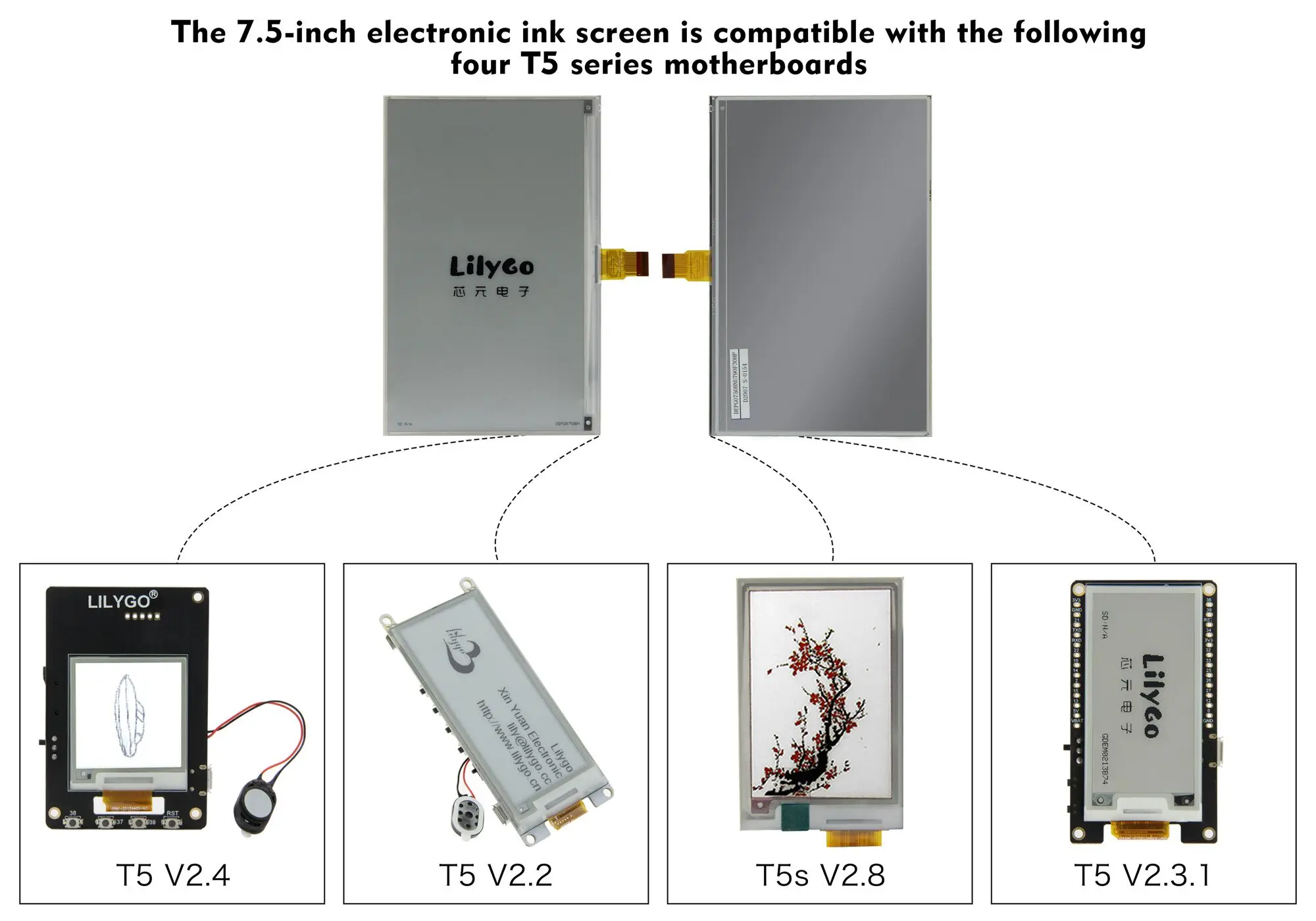 7,5 дюйма e-бумажная введениеЭто электронный чернильный экран с той же последовательностью контактов, что и 1,54, 2,13, 2,6, 2,7, 2.9.3.7 и другие экраны размеров.Совместимость с материнскими платами серии T5 чернил, за исключением T5-4.7 дюймовых материнских плат, другие поддерживаются,Он может быть использован путем прямого изменения экрана и написания соответствующего драйвера.