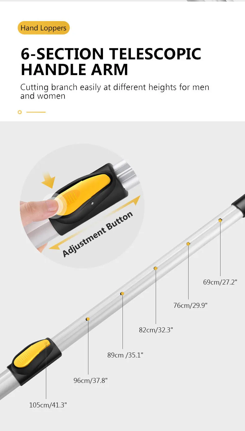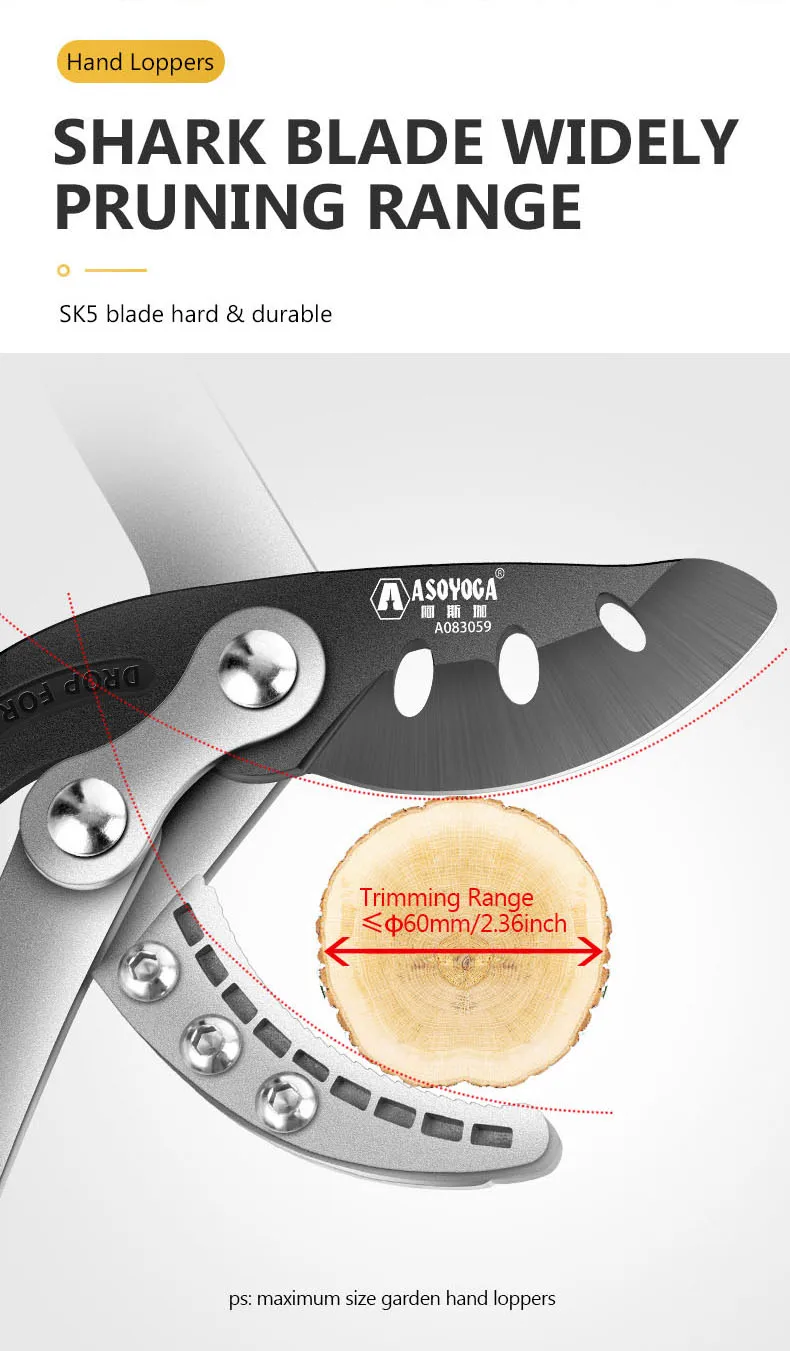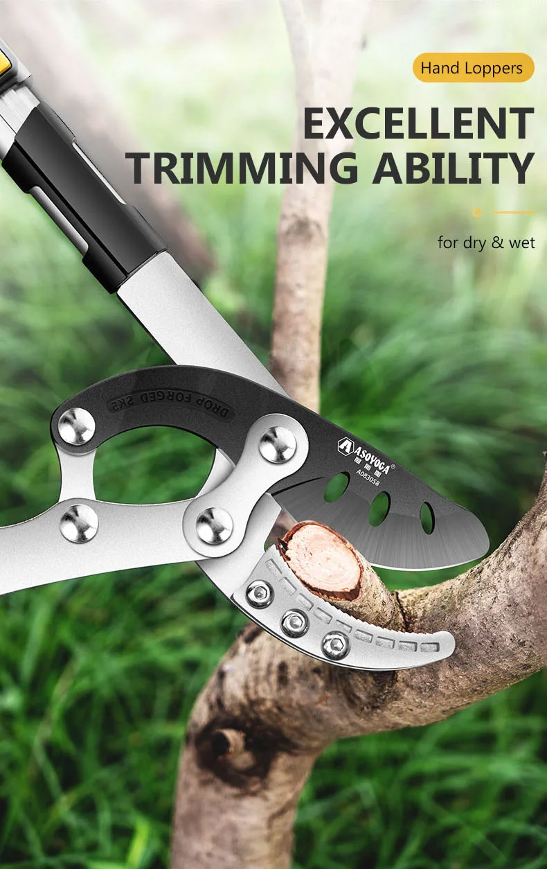 Имя-ASOYOGA Выдвижная Anvil Loppers дерево триммерОстрое и Прочное Лезвие-сверхмощное лезвие лоппер из SK-5 стали, прямое лезвие покрытое японской тефлоновой обработкой, полностью закаленная точность-лезвие остается острым даже после некоторого тяжелого использования, с низким коэффициентом трения, коррозионно-стойкое антипригарное покрытие помогает храповым ножкам скользить по деревуРаздвижная селфи-алюминиевая ручка-выдвижной обрезка сучкорез разработан с телескопическую штангу, которая может быть отрегулировано от 28,5-41,3 дюймов, с предохранителем и универсальным питанием-от источника переменного или снимается блокировка кнопки, идеально подходит для резки 2 "древовидные ветви без усилий. Что значительно снижает трудоемкость, никогда не устают после дня садоводства, даже для пожилых садовников или если у вас есть артритные запястьяЛегкий и прочный-выдвижная штанга изготовлена из алюминиевого сплава, который предотвращает появление ржавчины и обеспечивает ощущение комфорта при захвате. Кроме того, этот секатор оснащен противоскользящей резиновой ручкой, уменьшая вибрацию во время использованияШирокое применение-этот разделочный ножницы подходит для обрезки фруктовых деревьев, обрезки в горшках, ландшафтного дизайна, что позволяет решать любые тяжелые работы по обрезкеПосылка включает в себя-1 х ручной лоппер