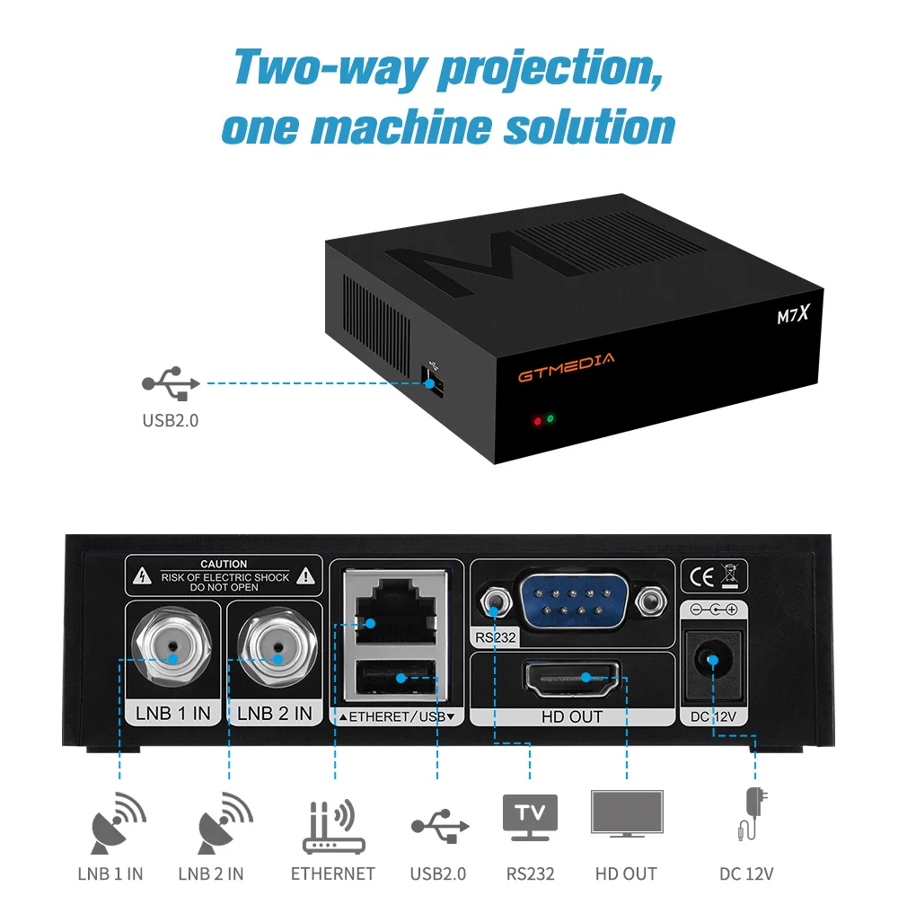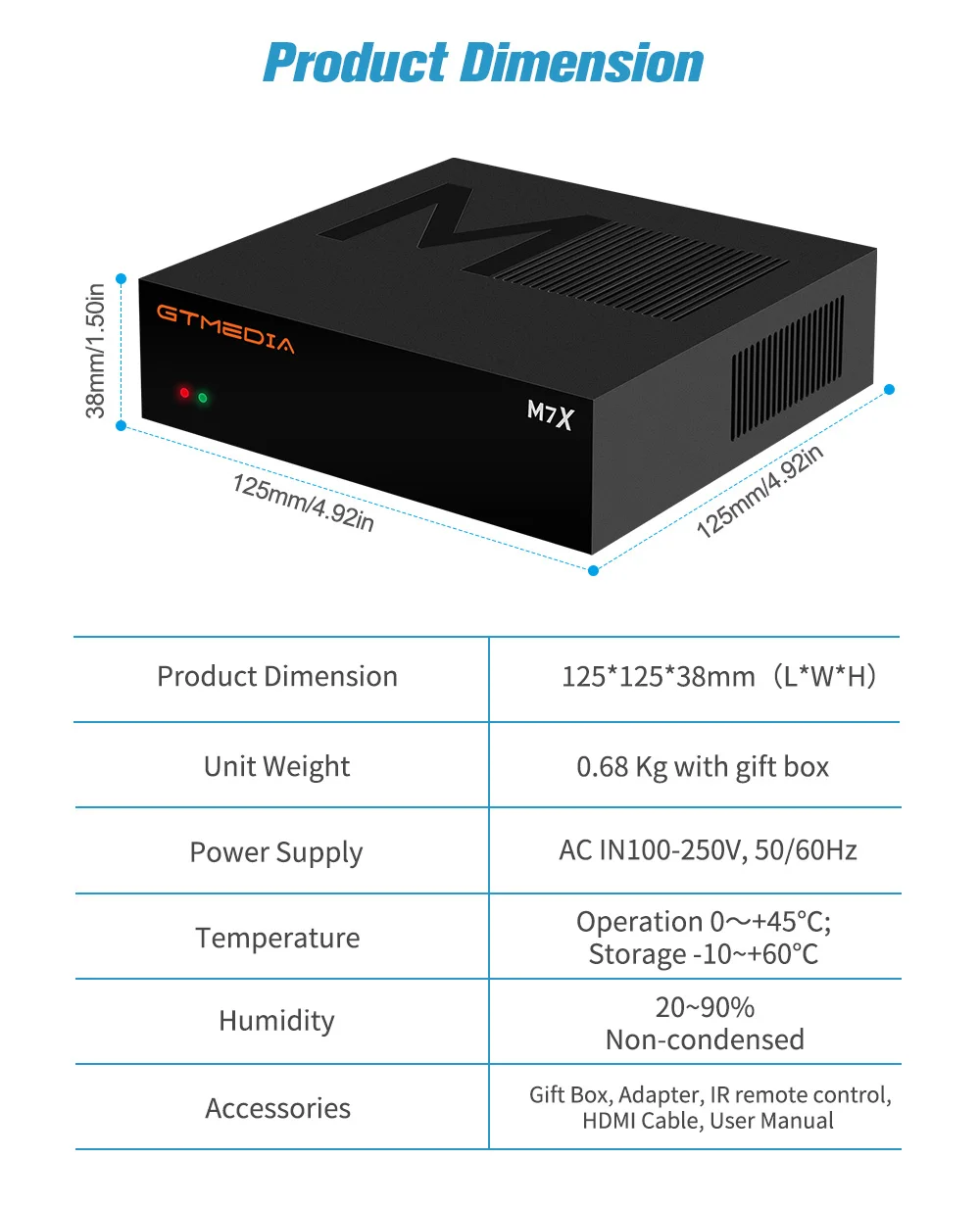Спутниковый ресивер GTMEDIA M7X поддерживает DVB-S2 VCM/ACM/multi-поток Встроенный 2,4G WIFI двойной тюнер lKS & SKS 63W 、 75W