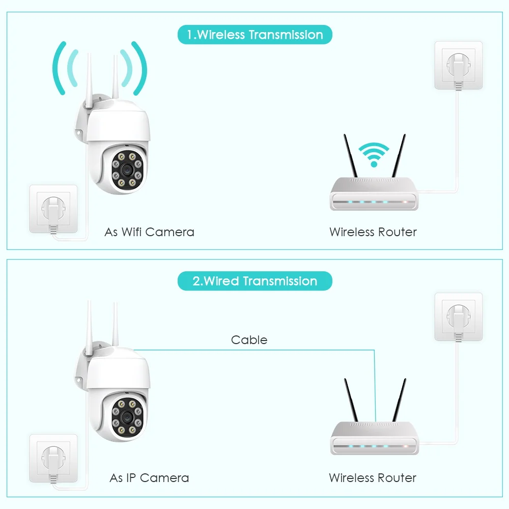 ●Проводное соединение: Камера с портом RJ45 LAN, вы также можете подключить камеру к сетевому кабелю (когда вы без wifi);