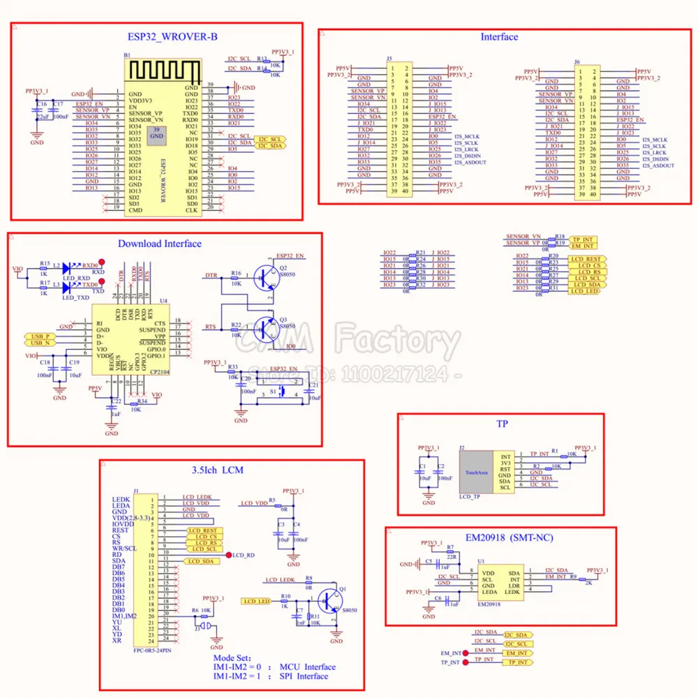 3) LCM дисплей interface3.5-дюймовый LCM дисплей интерфейс, SPI интерфейс, 0,5 мм интервал, 24pin. Этот интерфейс SPI подключен к аппаратному интерфейсу HSPI esp32, частота рабочих часов может