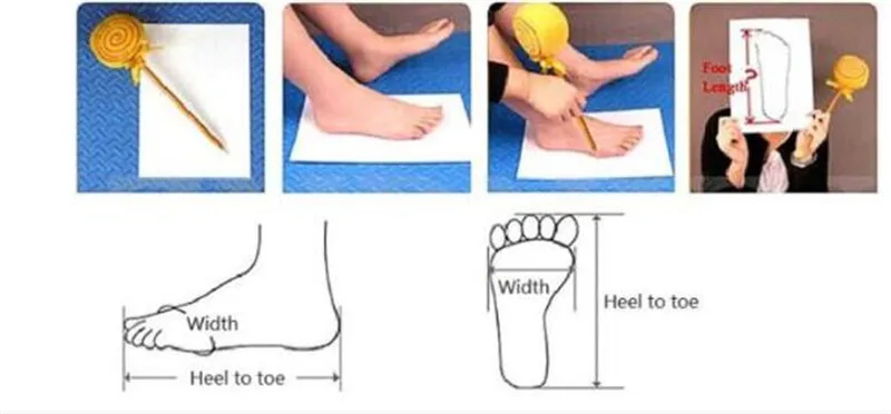 1. Стандартные размеры разных стран и разных производителей отличаются, длина вашей стопы является единственным критерием дляВыберите размер.Измерьте длину вашей стопы, пятку до носка, очень важно.2. Если ваша стопа немного широкая и толстая, пожалуйста, выберите на 1 размер больше.3. Если вы не знаете, как выбрать, сообщите нам длину вашей стопы.