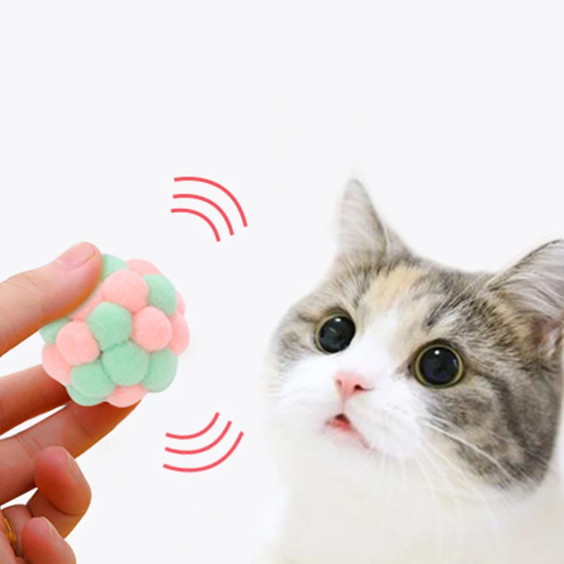 2. Разноцветные плюшевые шарики с колокольчиками, привлекают внимание кошек.