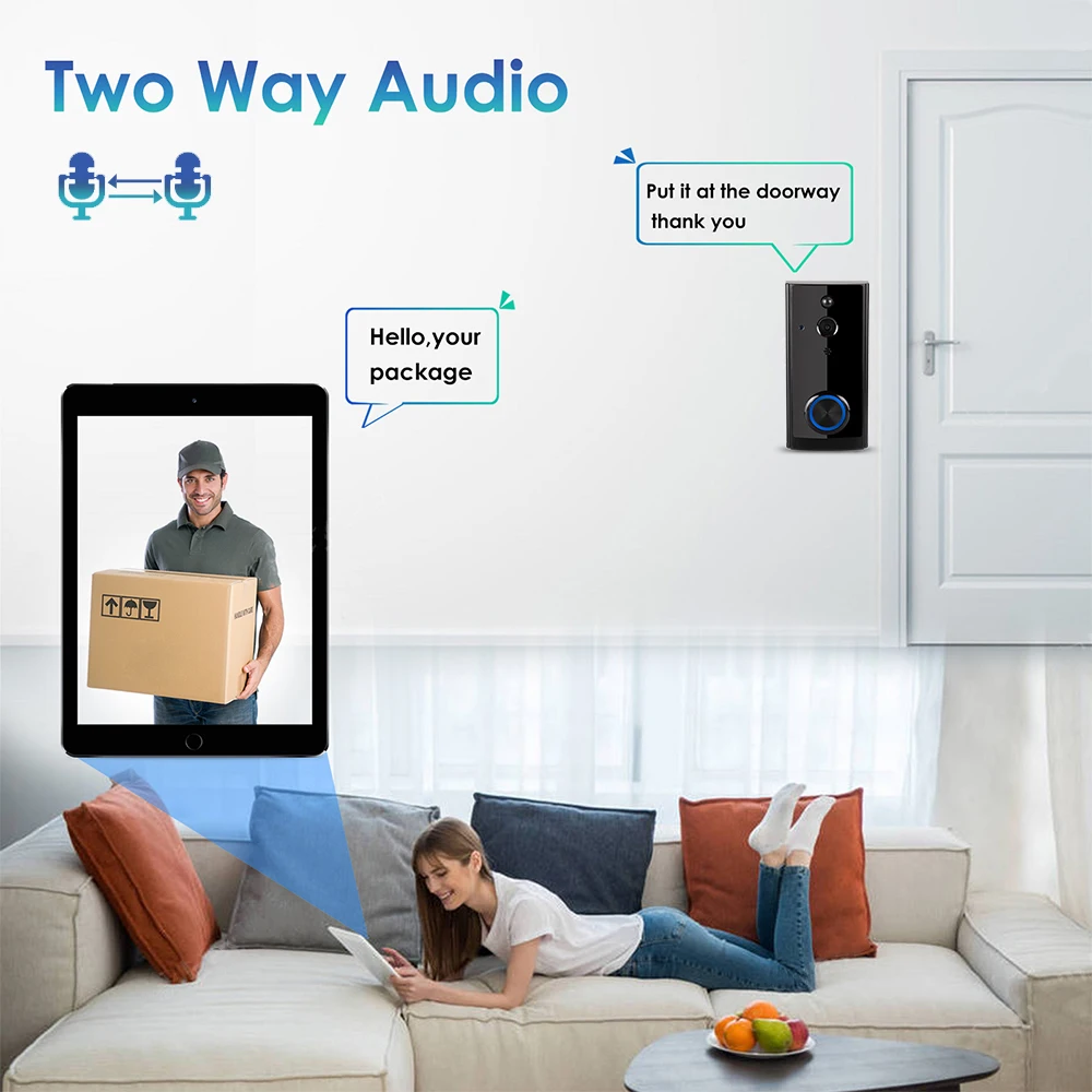 7. Ясная 2-полосная аудио: Слушайте и говорите с посетителей через встроенный динамик и микрофон прямо с вашего смартфона.