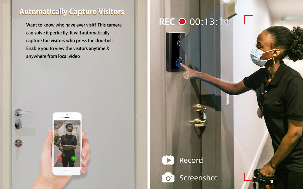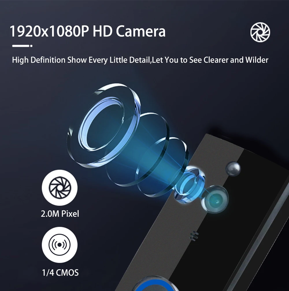 Беспроводная камера дверного звонка использует Новейший Высококачественный чип и расширенный датчик, улучшая качество видео в формате full HD до 1080P. Позвольте вам видеть яснее и умнее.