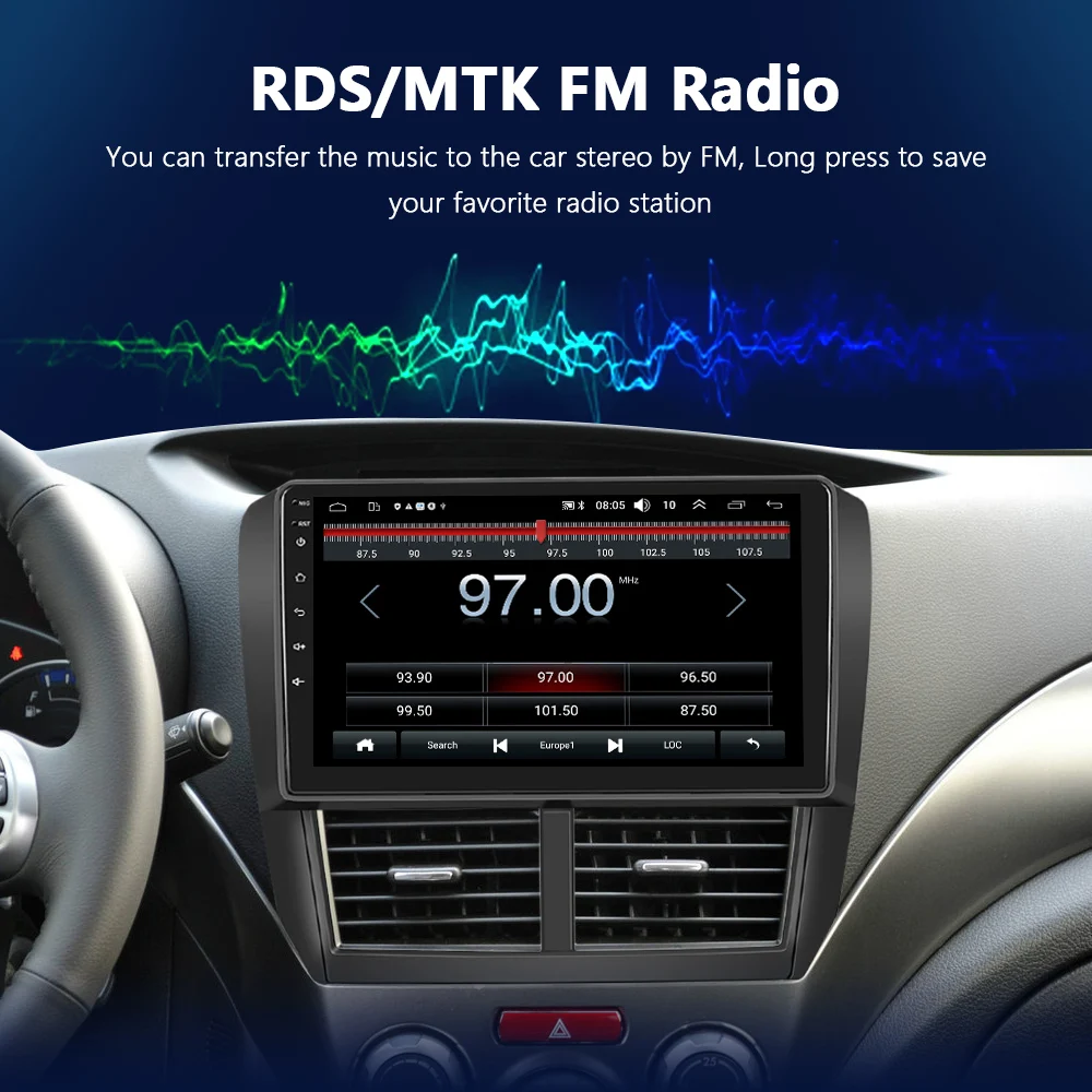 В режиме онлайн Вы можете передавать музыку на стереосистему автомобиля FM, чтобы наслаждаться оригинальным стереозвуком автомобиля, с 18 предустановленными станциями.