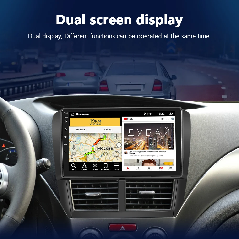 Android стерео поддерживает видео выход в двух мониторах. Задние пассажиры могут наслаждаться просмотром видео