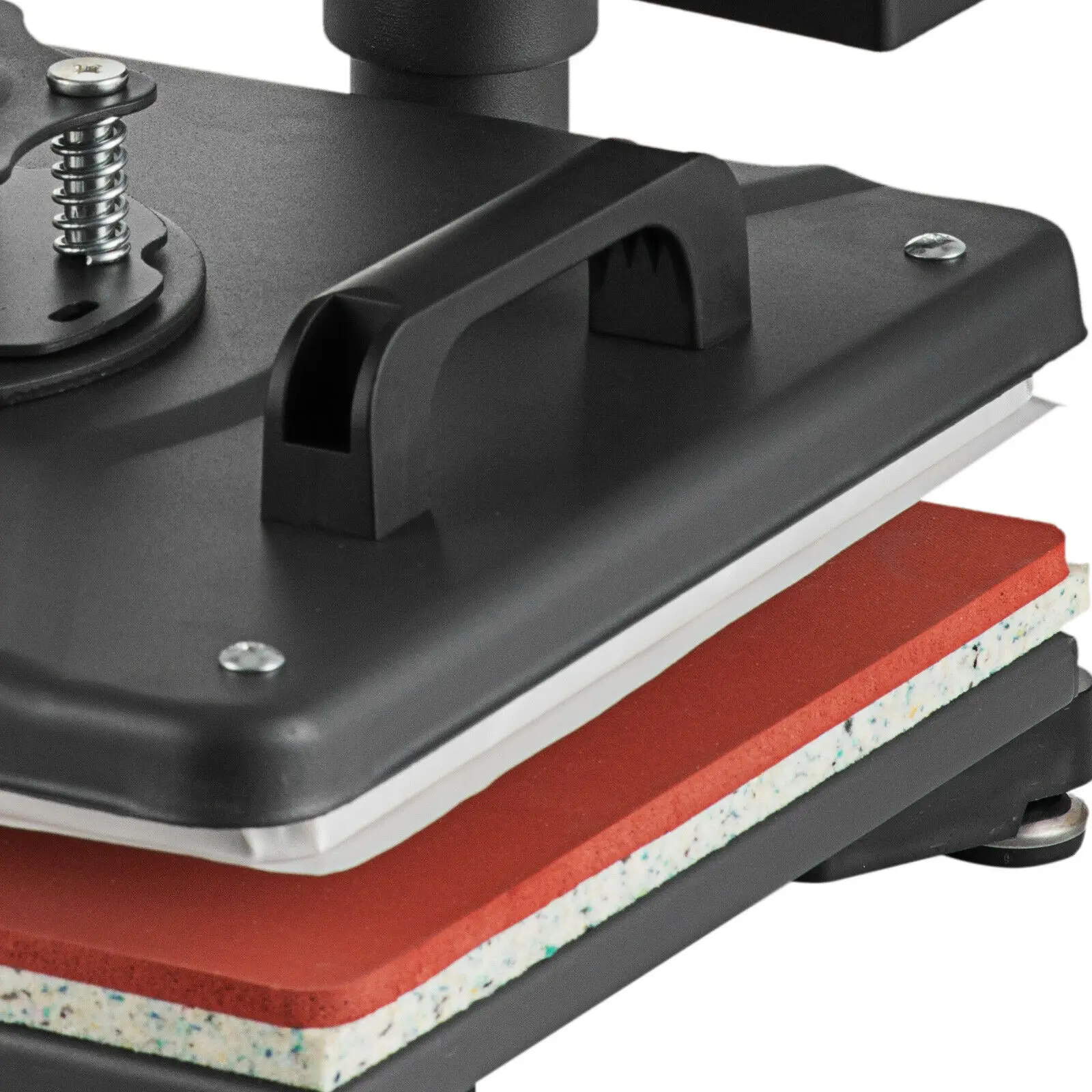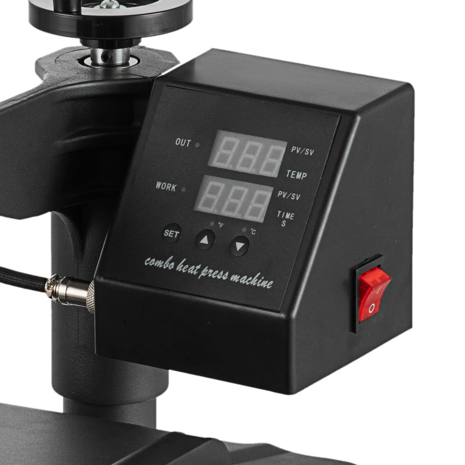 The swing-away heat press boasts all of the must-have attachments. It has a built-in Teflon coated 15in x 12in (38 x 29cm) heat platen with a full range of heating coils to allow for consistency throughout its surface. The digital timer control is adjustable up to 999 seconds. The features a digital temperature gauge ranging from 0 - 250ºC (about 480ºF).