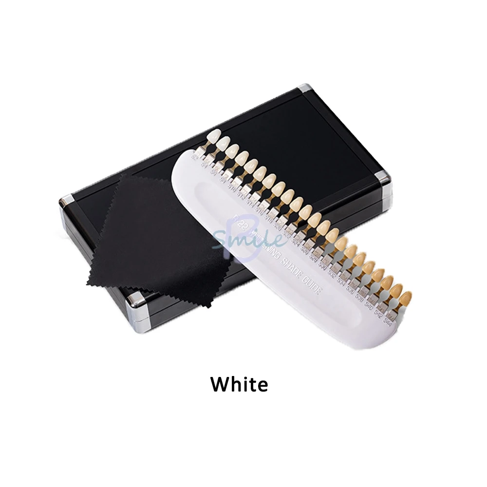 Item Description:Type: Dental color shade guideMaterial: Porcelain; ABS; AluminumQuantity: 1setFeatures:1.22colors, simple and clear, provides you a high accuracy of teeth color.2.High-quality porcelain 3d teeth shade guide, good for teeth whitening and inserting a false tooth.3.Professional tooth whitening color palette for comparison before and after whitening.4.Come with a stylish aluminum case and a built-in mirror, portable and easy to carry.5.Each tooth can be individually removed, easy to clean and storage.