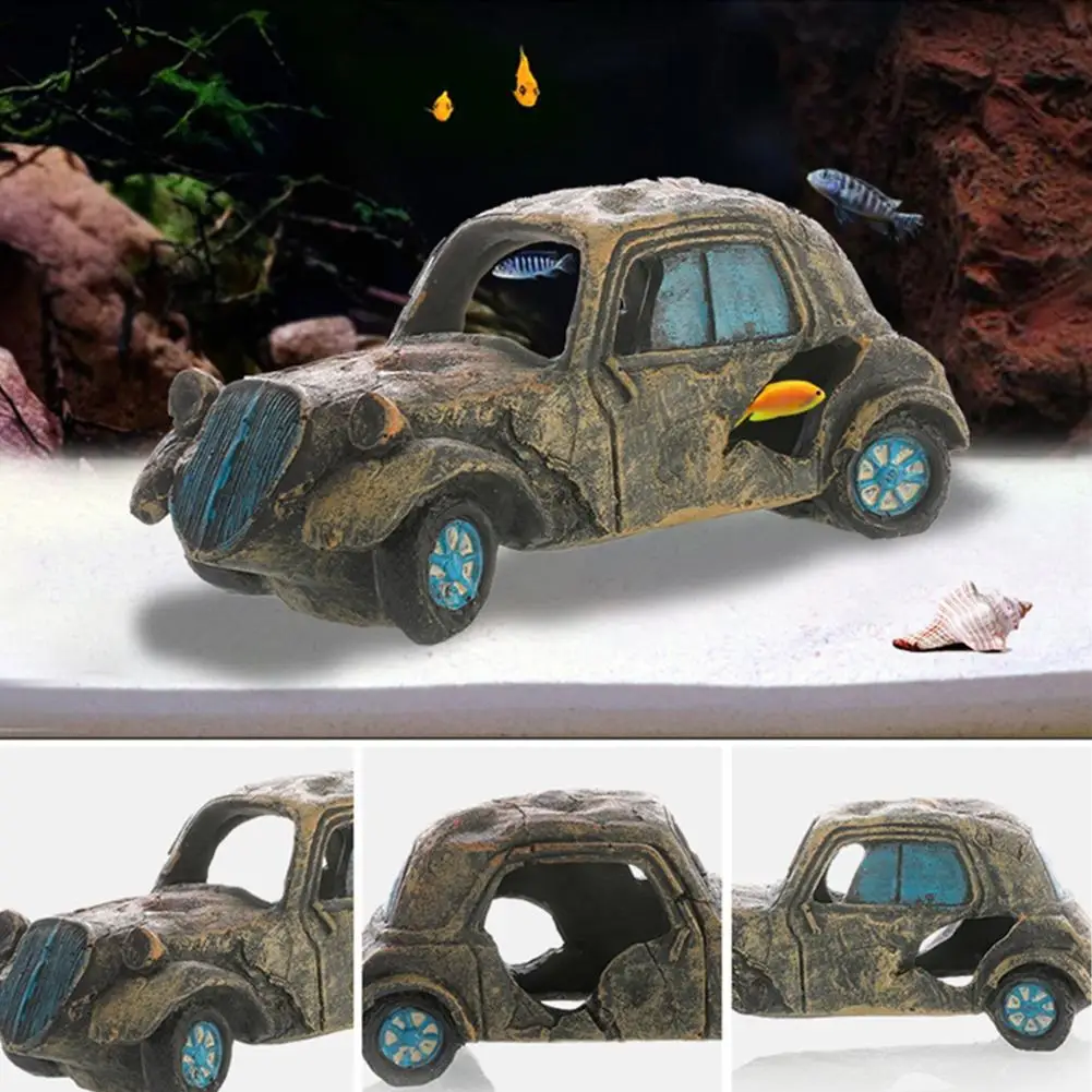 Резиновая затонувшая машина, орнамент, рыба, креветки, скрывающаяся пещера, укрытие, аквариум, ландшафтное украшение, аксессуары, декор для аквариума