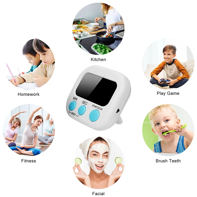 3. Идеальный таймер для домашней работы, упражнений, тренировок в тренажерном зале, приготовления пищи (таймер Яйца), занятий спортом, игр и занятий таймером. Максимальное время-99 минут, 59 секунд.