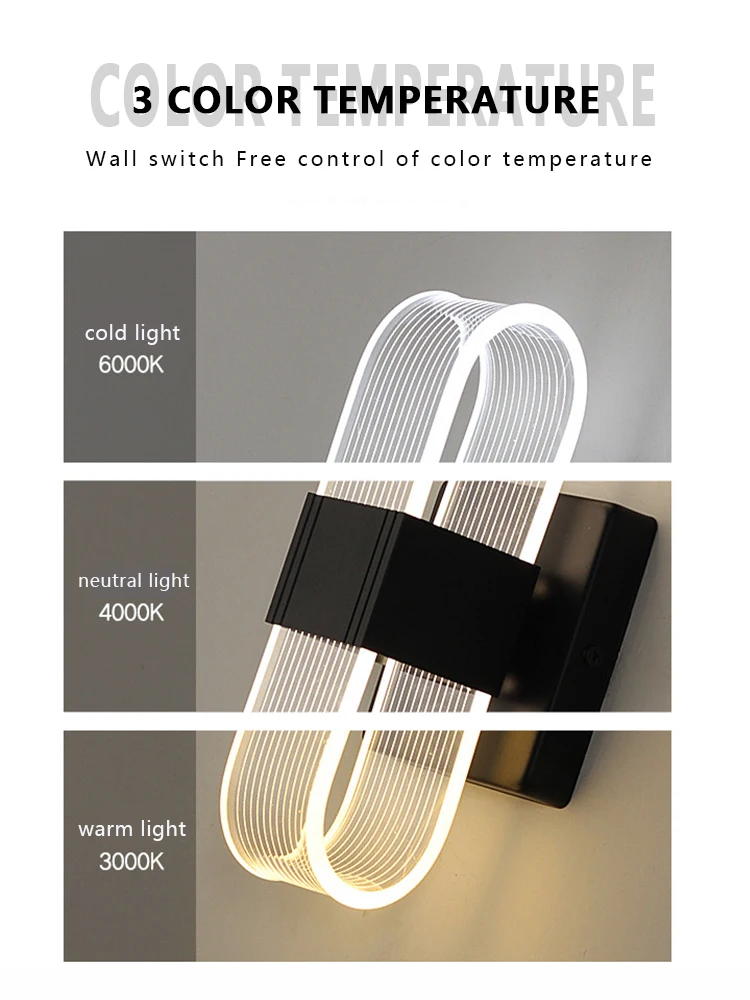TRANSPARENT ACRYLIC THREE LIGHT MODES CLOSED LOOP DESIGN WALL LIGHT
