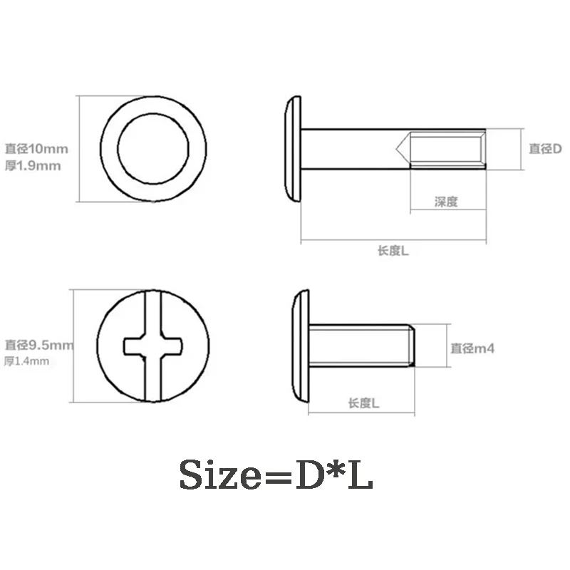 10 шт. M5 Chicago винтовые никелированные медные заклепки для мужчин и женщин L = 6 мм-70 мм, фотоальбом