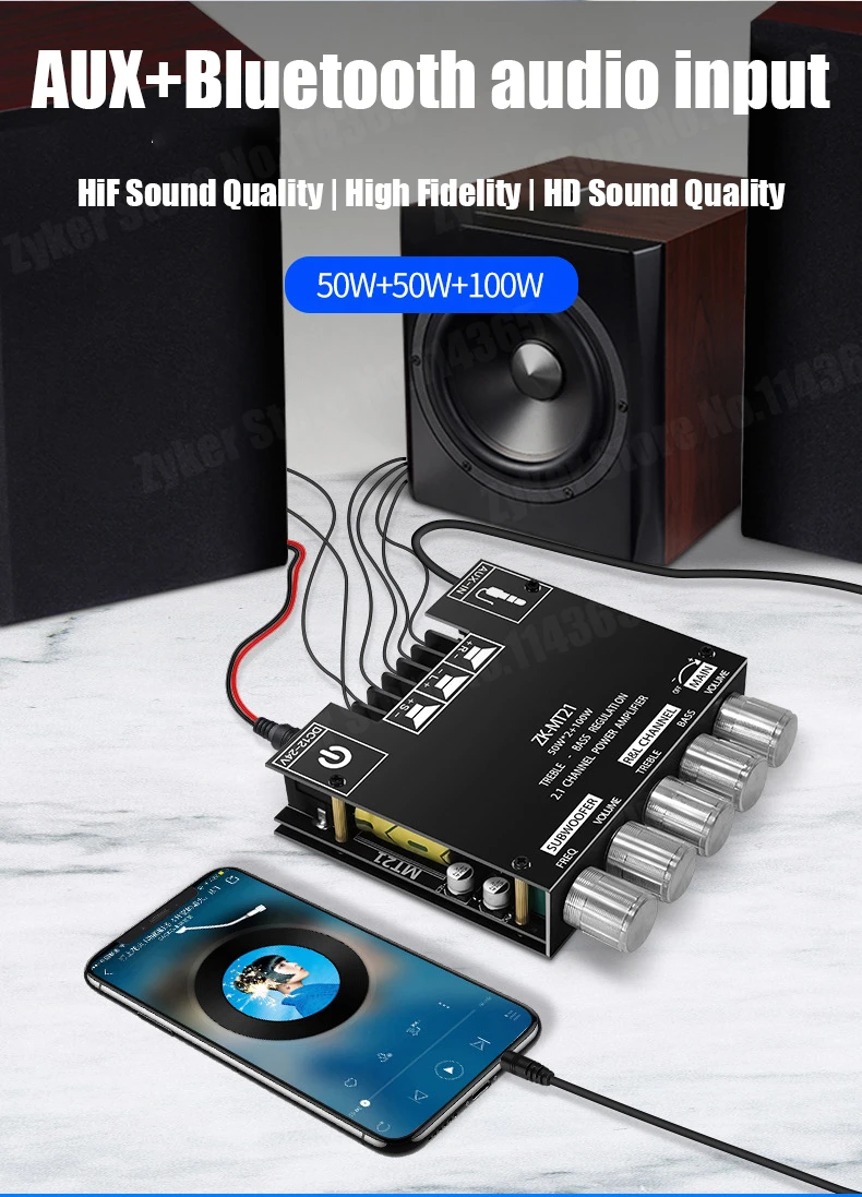 ZK-MT21 50Wx2 + 100 Вт 2,1 канал Bluetooth 5,0 Hifi сабвуфер усилитель плата мощность аудио стерео усилитель плата Бас AMP AUX вход