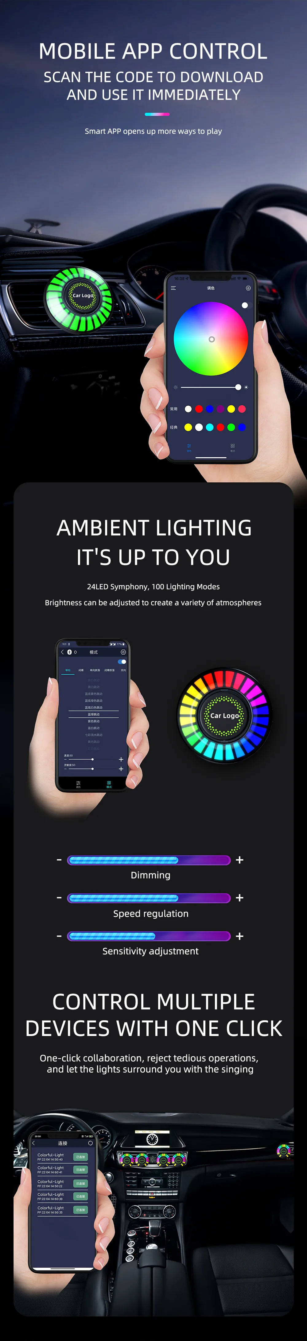 Автомобильные ароматы, ароматерапия лампа для пикапа светодиодный RGB приложение управления умный окружающий музыкальный Ритм Светильник Авто диффузор вентиляционный зажим свежее
