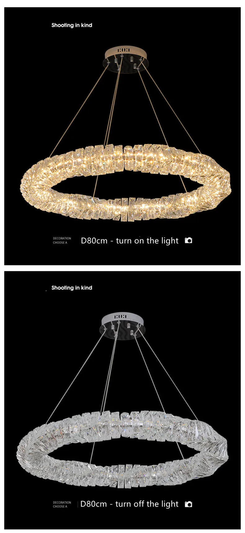 Современная ресторанная люстра с регулируемой яркостью и дистанционным управлением, Хрустальные подвесные светильники, роскошная круглая Светодиодная лампа для гостиной