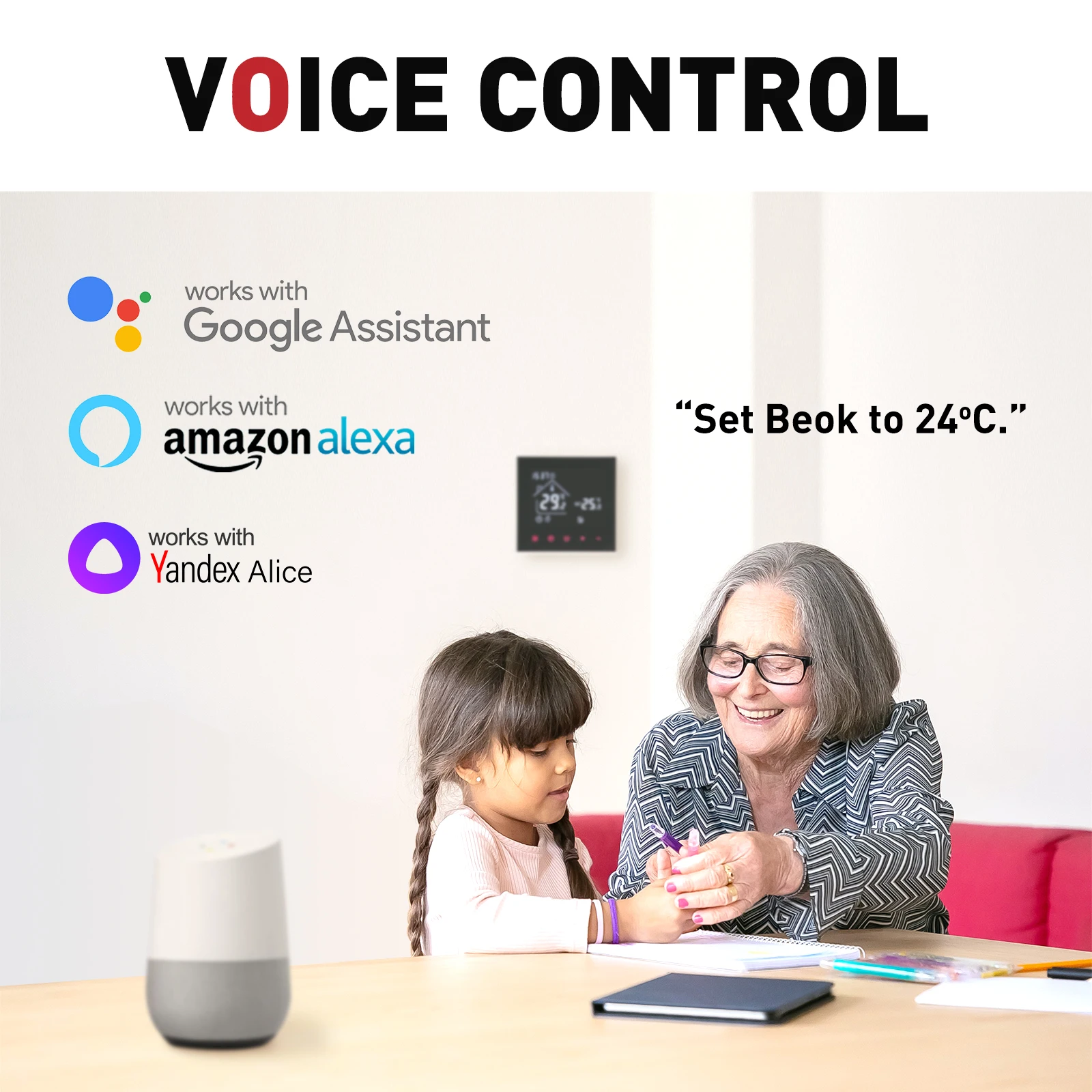 【Пульт дистанционного управления для смартфона (режим wifi) 】 Приложение Tuya Smart/ Smart Life для Android и IOS. Дистанционное управление с помощью приложения температура вашего дома через WIFI. Даже если вы находитесь в любой точке мира. 【Голосовое управление (режим wifi) 】 Работа с Yandex Alice, Amazon Alexa, Google assistant. (Например: Alexa, установите термостат Beok до 25 °C) 【Сделай сам еженедельная программа С ежедневным программированием 5 + 2/6 + 1/7, вы можете установить различные температуры для 1-6 периодов в рабочие дни и 2 периода в выходные дни, чтобы соответствовать вашей повседневной жизни. Делает вашу жизнь проще ~