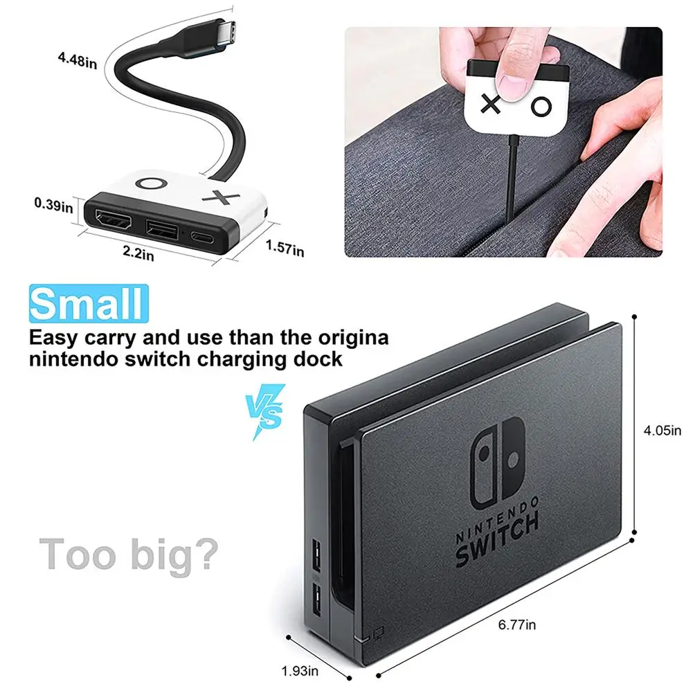 1. Заменить официальный док-станция: этот док-станция всего 45 г, с небольшим размером и легким дизайном, вы можете положить его в карман, приклеить его куда угодно, И наслаждайтесь совместимостью с переключаемыми играми или режимом Samsung DEX на вашем телевизоре.