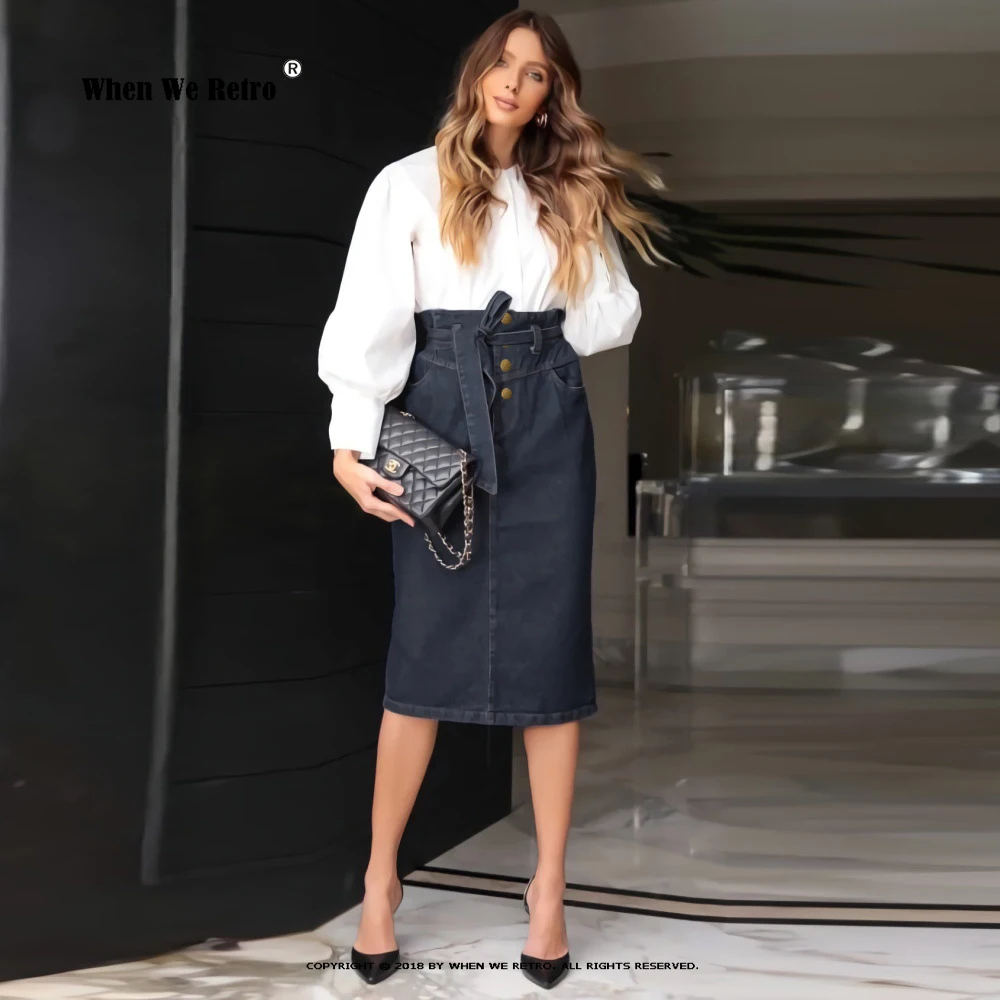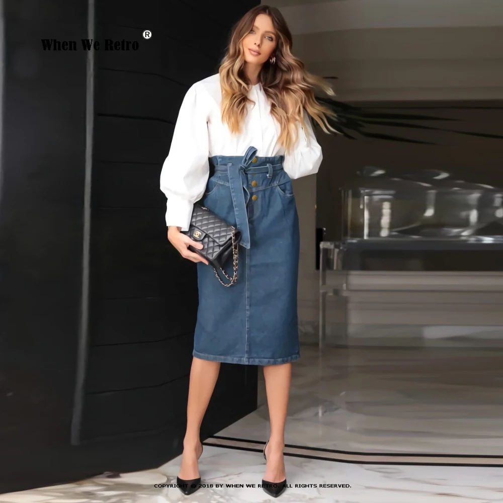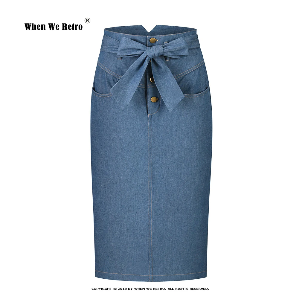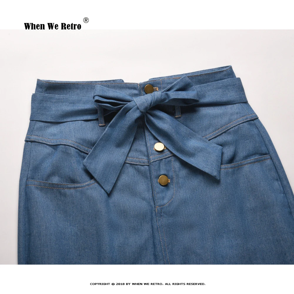Ретро ветер джинсовая юбка 2022 летняя Офисная Женская мода универсальная вилка синий сексуальный бант Декоративная Сумка бедра юбка VD3204 S-XXL