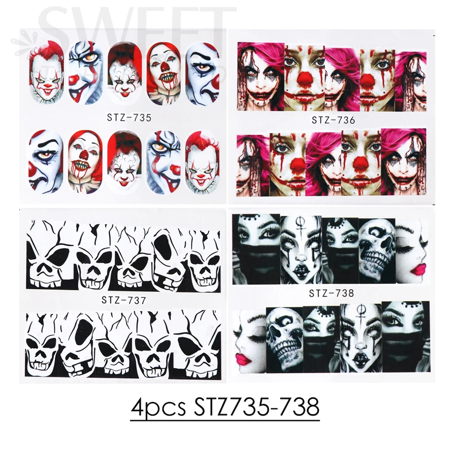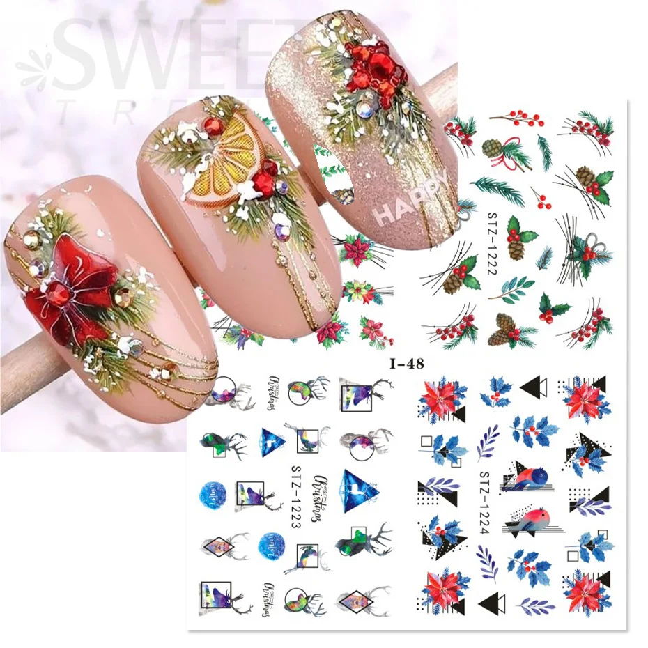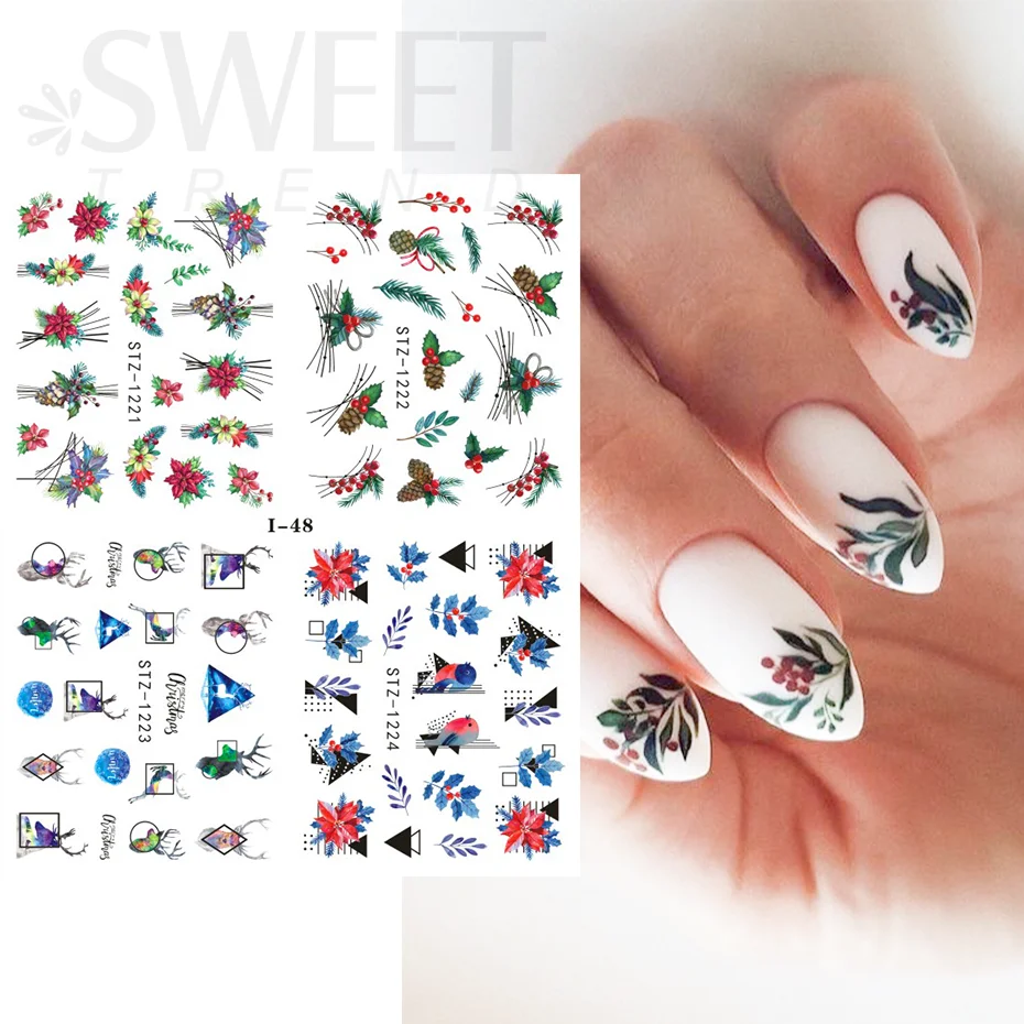 4 шт наклейки на ногти, наклейки на воду, Рождество, зима, снежинка, птица, пингвин, Санта, лось, цветок, изображения, дизайн, Переводные слайдеры, BEI44-49