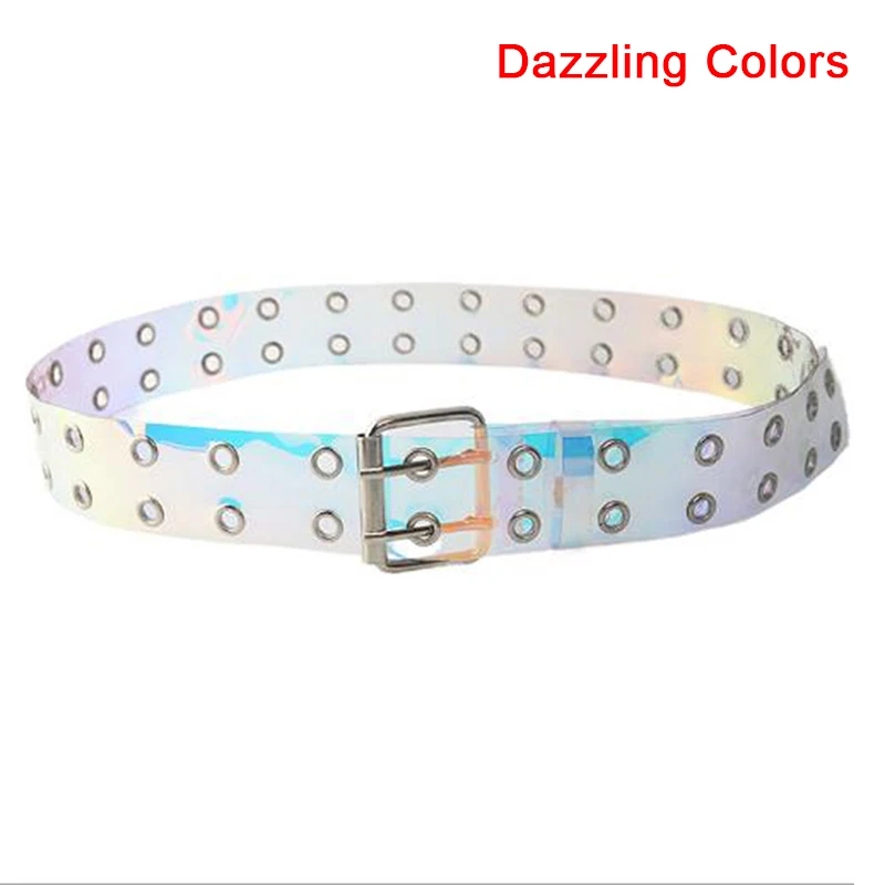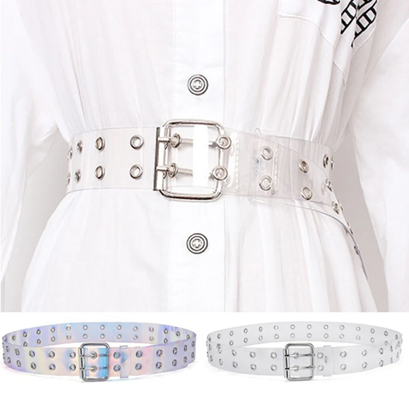 Двухрядный прозрачный ремень из ПВХ для женщин, модный ремень с пряжкой, женские белые поясные брюки, прозрачные ремни, дамские джинсы, ремень с люверсами